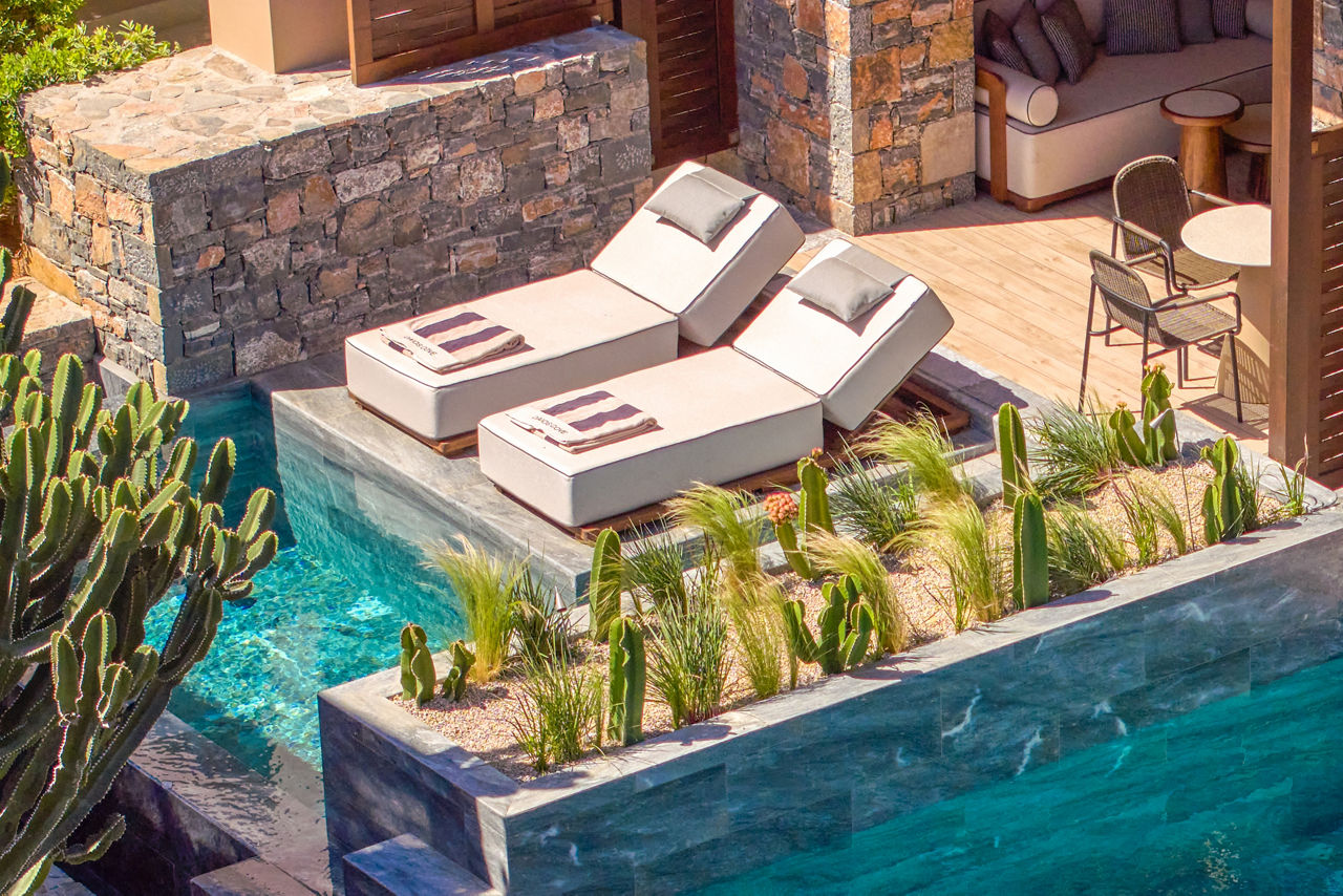 Tucked away in a secluded cove, all eyes are on the Aegean at the heavenly Daios Cove. Every detail has been designed in harmony with the surrounding landscapes, creating the ultimate five-star escape. Sleek features, a private beach and an infinity pool set the scene for serene stays. Of all the fantastic facilities, the KEPOS by Goco wellness area is its crowning jewel. Expect high-tech treatments and bespoke fitness sessions, against the beautiful bay backdrop. You can delight in culinary wizardry across the six restaurants, where the focus is on fresh, local flavours. Expert mixologists are on hand too, crafting cocktails to suit all tastes.