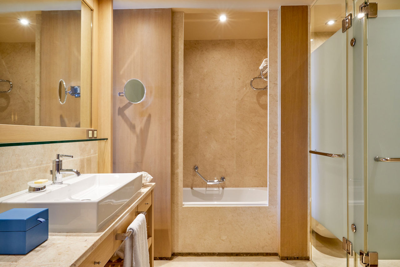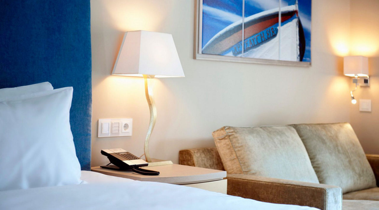 Deluxe rooms with Sea View sleep up to 3 adults and have bathroom containing bath and shower, air conditioning, hairdryer, flat screen television, tea and coffee making facilities and balcony or terrace. Room upgrade options are also available.