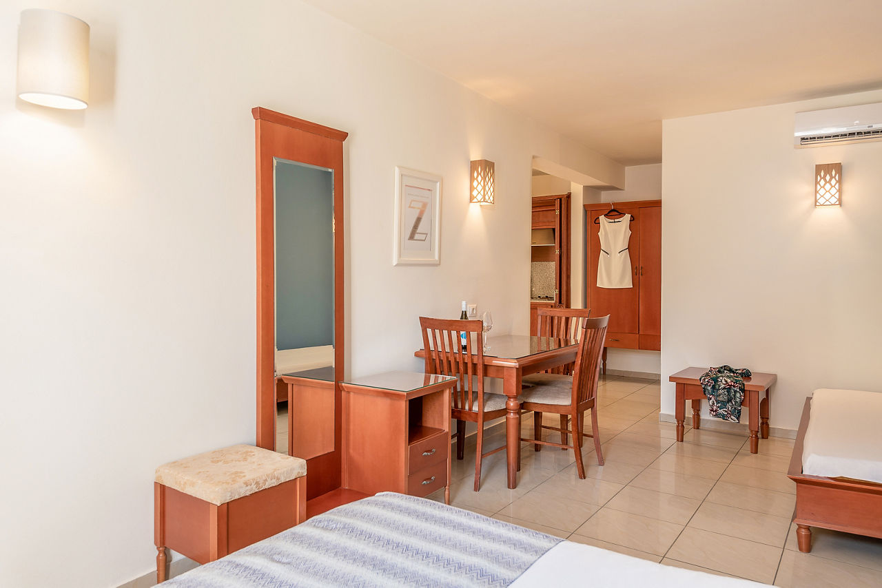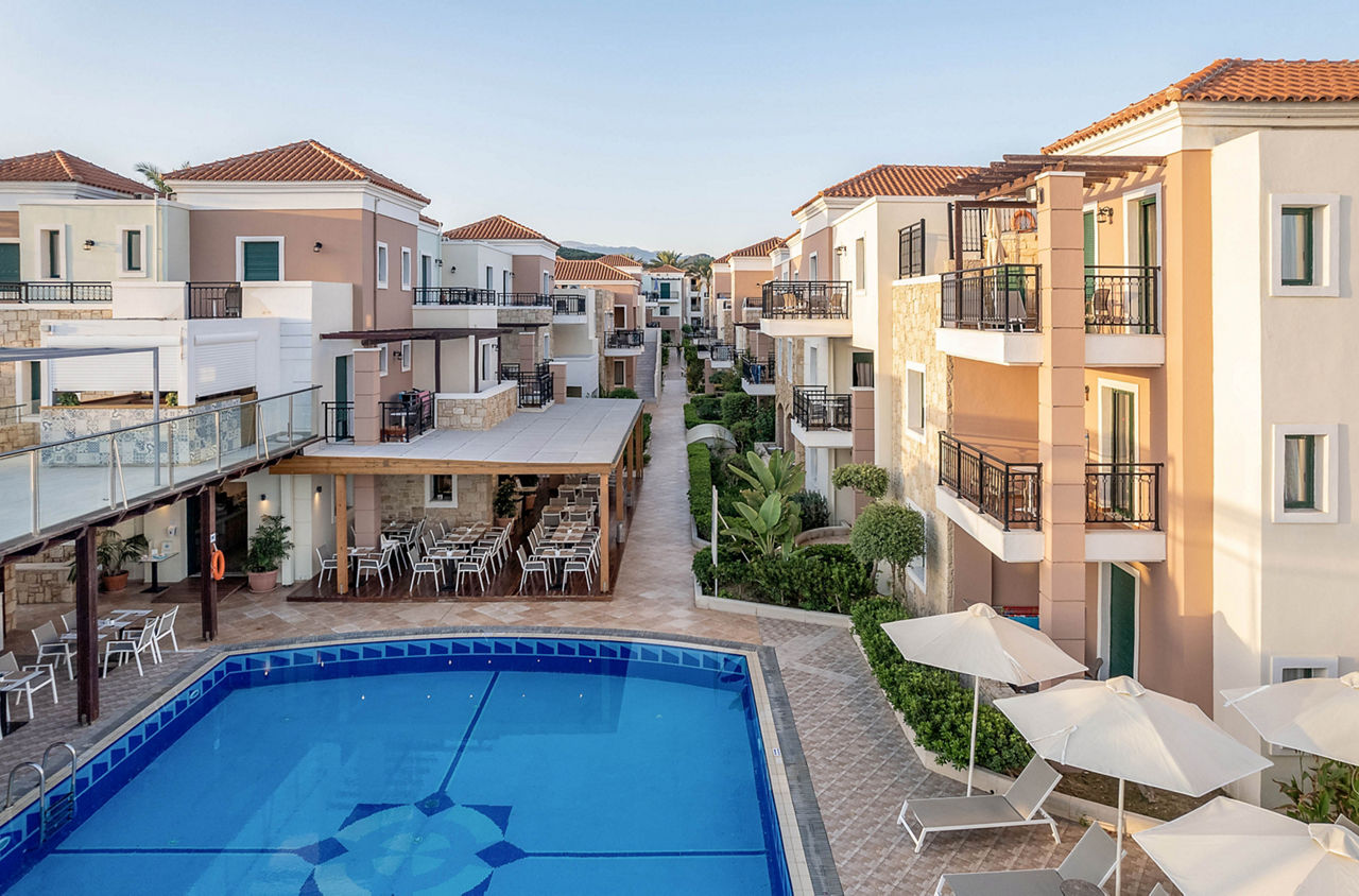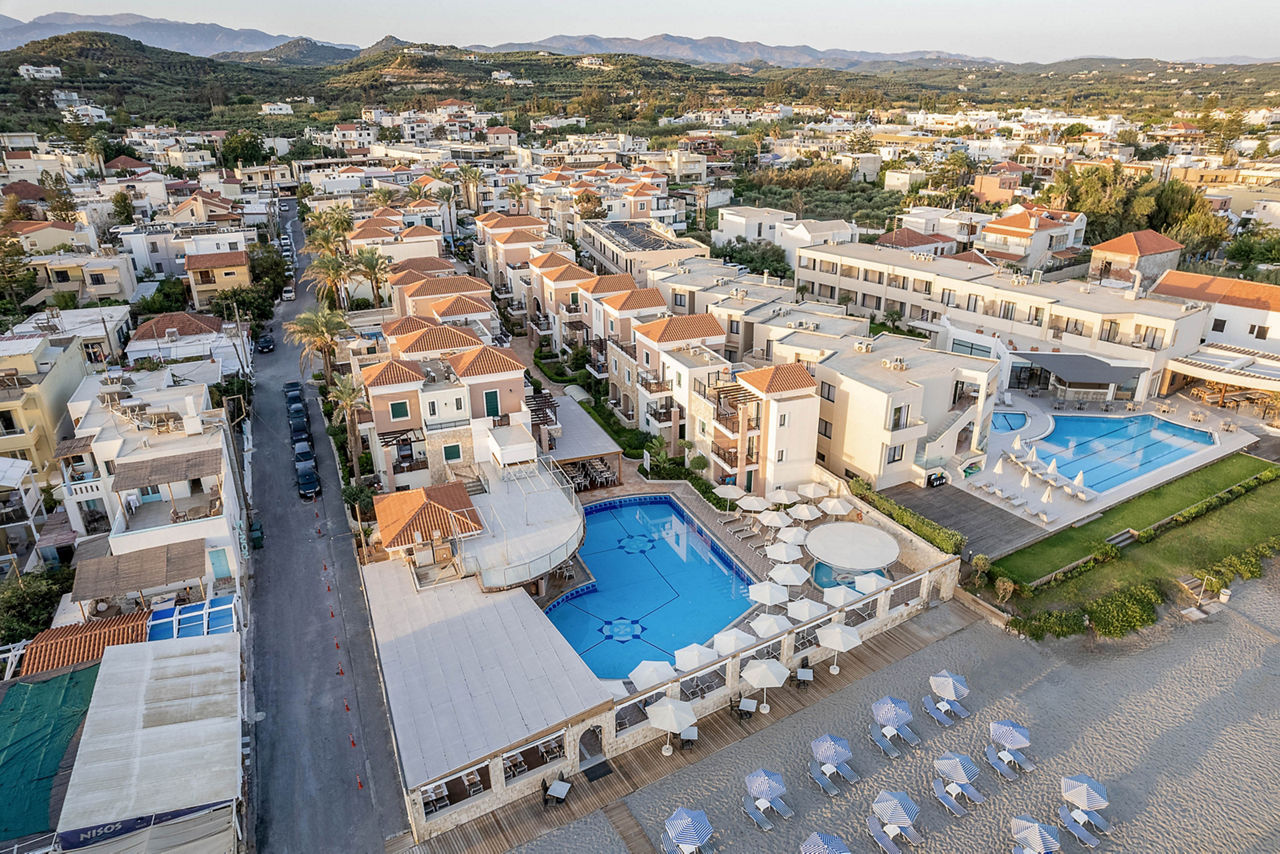Caldera Bay boasts a fantastic beachfront location in the heart of the traditional yet vibrant town of Platanias. Days can be spent lazing in the sun by the pool area while refreshing with a drink from the bar. The choice of the hotel's well-equipped apartments and studios provide comfort and convenience which will make you feel settled for a relaxing holiday.