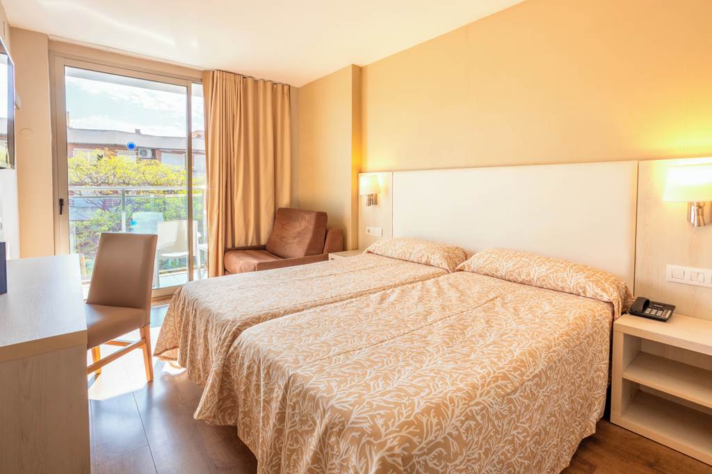 Double and Twin room sleeps up to 3 adults and have air-conditioning (approximately 15/06 - 15/09), satellite TV, bathroom, hairdryer and balcony or terrace. Double and Twin rooms sleeping 4 adults are also available and have two queen size beds. Single rooms are also available.