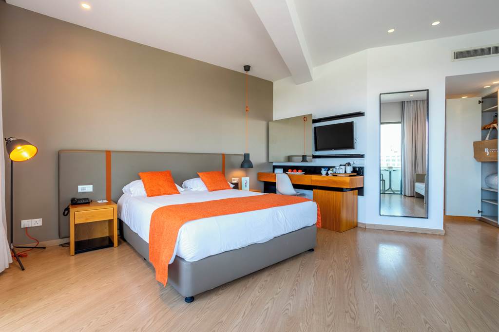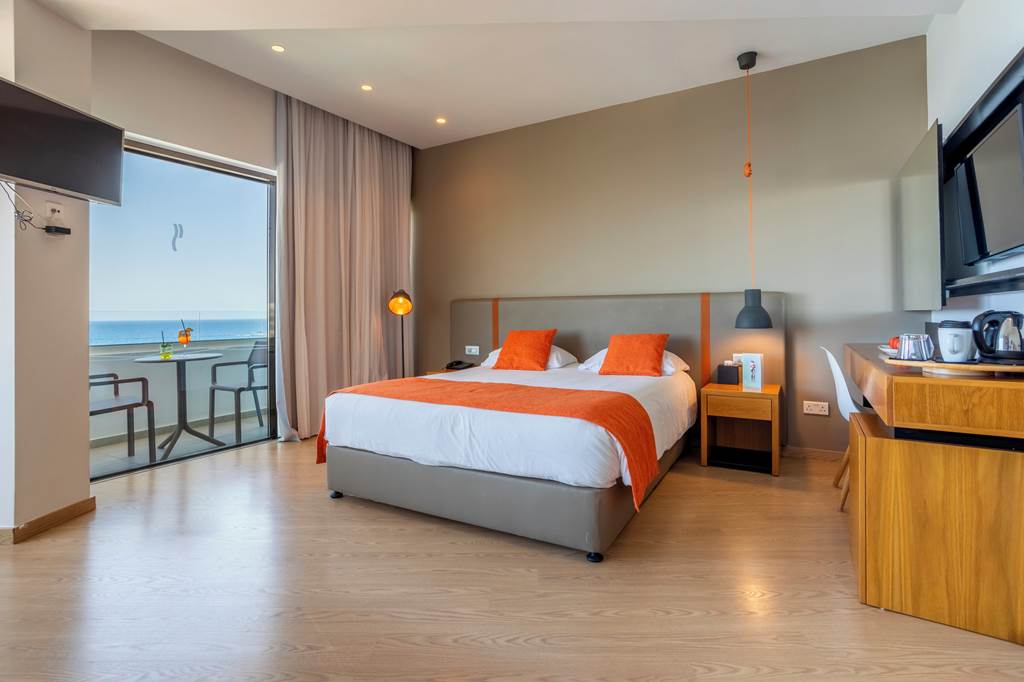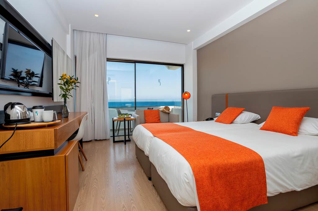 Twin rooms sleep up to 3 adults or 2 adults and 1 child and have a bathroom containing a bath with shower attachment, air conditioning, hairdryer, flat screen television, fridge and a balcony or terrace. Twin rooms with Sea View, Family rooms with Sea View sleeping up to 4 adults, Superior rooms sleeping up to 3 adults, Twin rooms for Sole Use and Twin rooms with Sea View for Sole Use are also available.