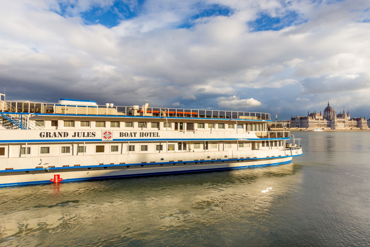 The Grand Jules Boat Hotel is a unique and charming accommodation moored on the picturesque Danube River in the heart of Budapest. Located on the Buda side of the city, this floating hotel offers a peaceful stay, whilst still being in the heart of the action. Be within walking distance to main attractions such as the Fisherman's Bastion and St Stephens Basilica, and with great access to public transport, explore the city with ease. This hotel features a sun deck where you can relax and take in the amazing views of the Hungarian Parliament Building and Chain Bridge and finish the night by staying in a cosy cabin. Have a unique experience at the Grand Jules Boat Hotel.