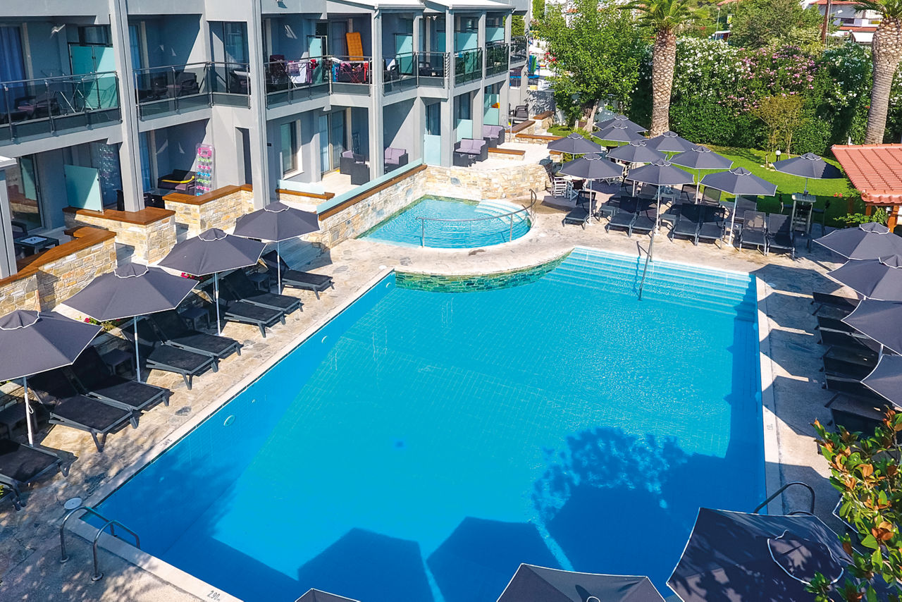 Whether you're a couple craving calm or a family in search of space, the roomy accommodation at Dionysos Hotel hits the sweet spot. Tucked between lush gardens and a flip-flop-friendly stroll from the nearest beach, this charming hotel is a total gem for all sunshine-seekers. Spend your days beach-hopping or lazing by the pool, then wander into Hanioti village for a laidback walk and a bite to eat. Your bright and spacious rooms are all equipped with a range of facilities, plus a balcony or terrace too!