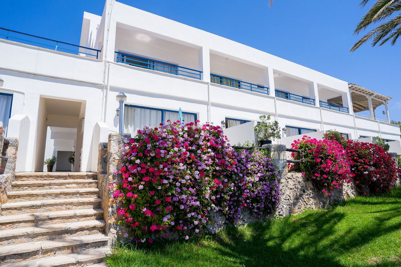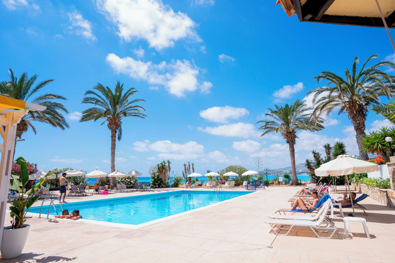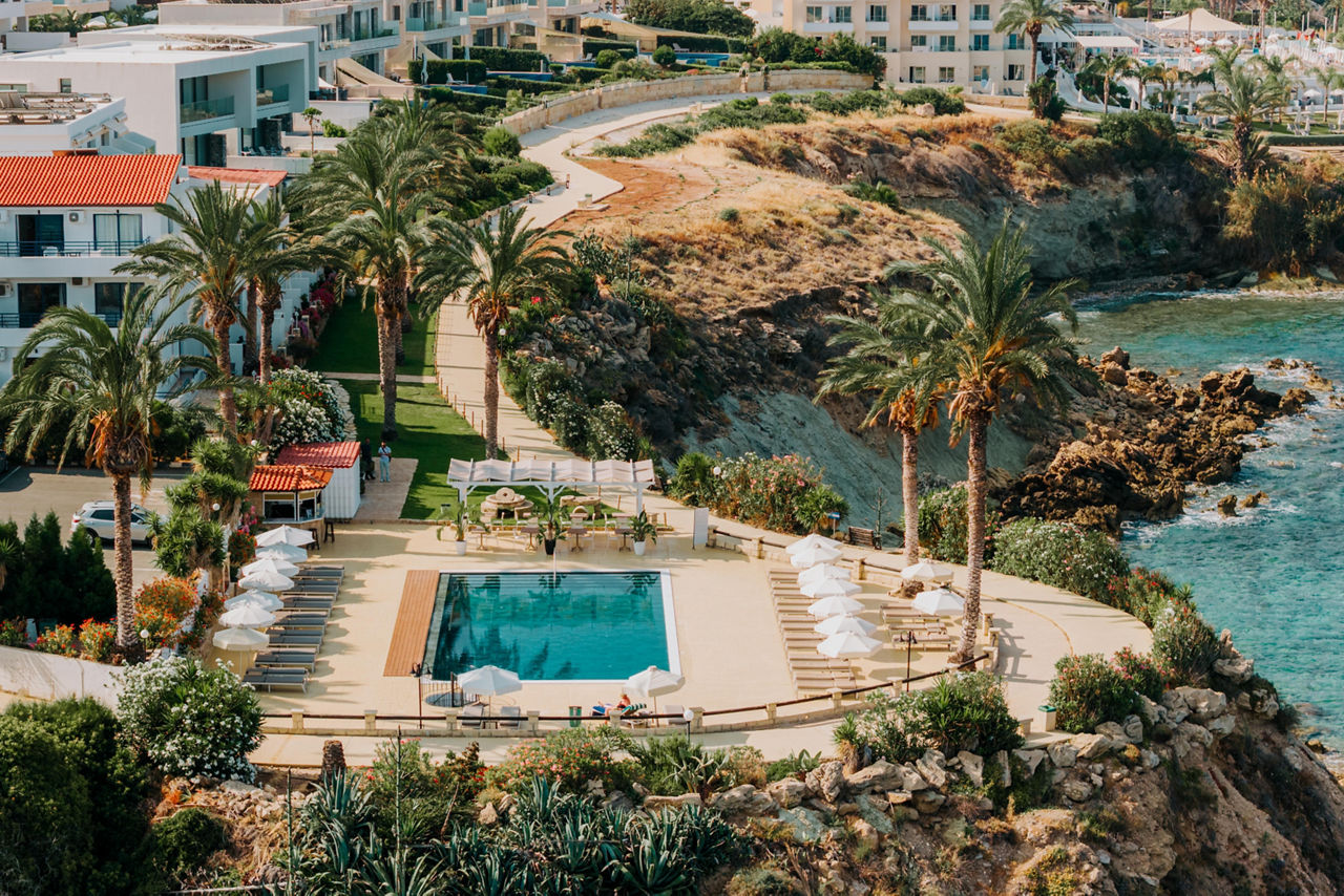 Positioned on its own peninsula between Paphos and Coral Bay, the Vrachia Beach Resort is ideal for those wanting to relax by golden sands and the Mediterranean Sea. The village of Kissonerga is nearby with Paphos and Coral Bay a short drive away. Studios and apartments are spacious and well equipped, on-site facilities include a spacious pool, bars, restaurant and tranquil spa.