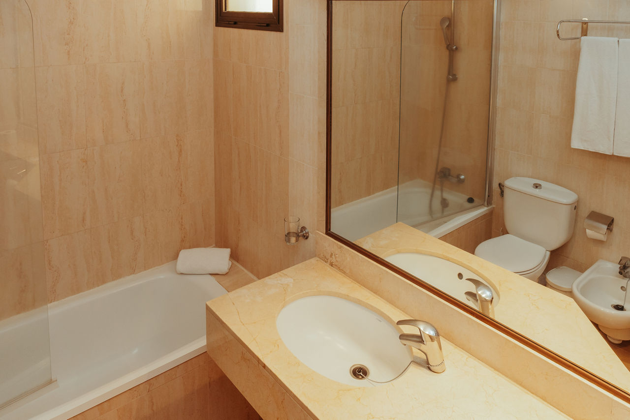 Twin rooms sleep up to 3 adults or 2 adults and 2 children and have full bathroom, air conditioning, satellite TV and balcony or terrace with waterpark and side sea views. Room upgrade options and Sole Use rooms are also available.