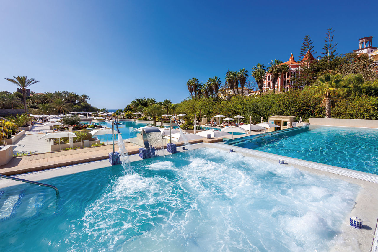 In an exclusive area of Costa Adeje, Gran Tacande boasts gorgeous views of the glittering sea, alongside direct access to the promenade. Its colonial-style blocks all adhere to a traditional Canarian theme, where three outdoor pools frame the exterior. While thoughtful service comes naturally to the welcoming staff, you can also anticipate a range of fantastic facilities. Be sure to savour contemporary cocktails in the rooftop bar and enjoy the Vitanova Spa?s nourishing thermal circuit. There are bright and spacious rooms as standard, plus palate-pleasing local cuisine for all ages and a dedicated children?s club for families.