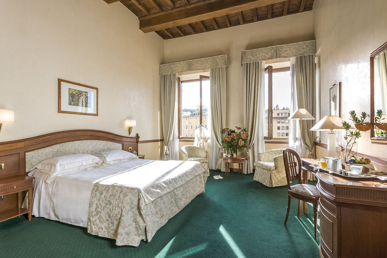 With a superb location by the Uffizi Gallery and Ponte Vecchio, the Degli Orafi is an ideal historical hotel. A former convent dating back to the 13th century, it offers a stunning breakfast room with frescoed ceiling and views over the River Arno and a roof terrace. Classically styled rooms offer all the mod cons, making this a great choice for couples and friends visiting Florence.