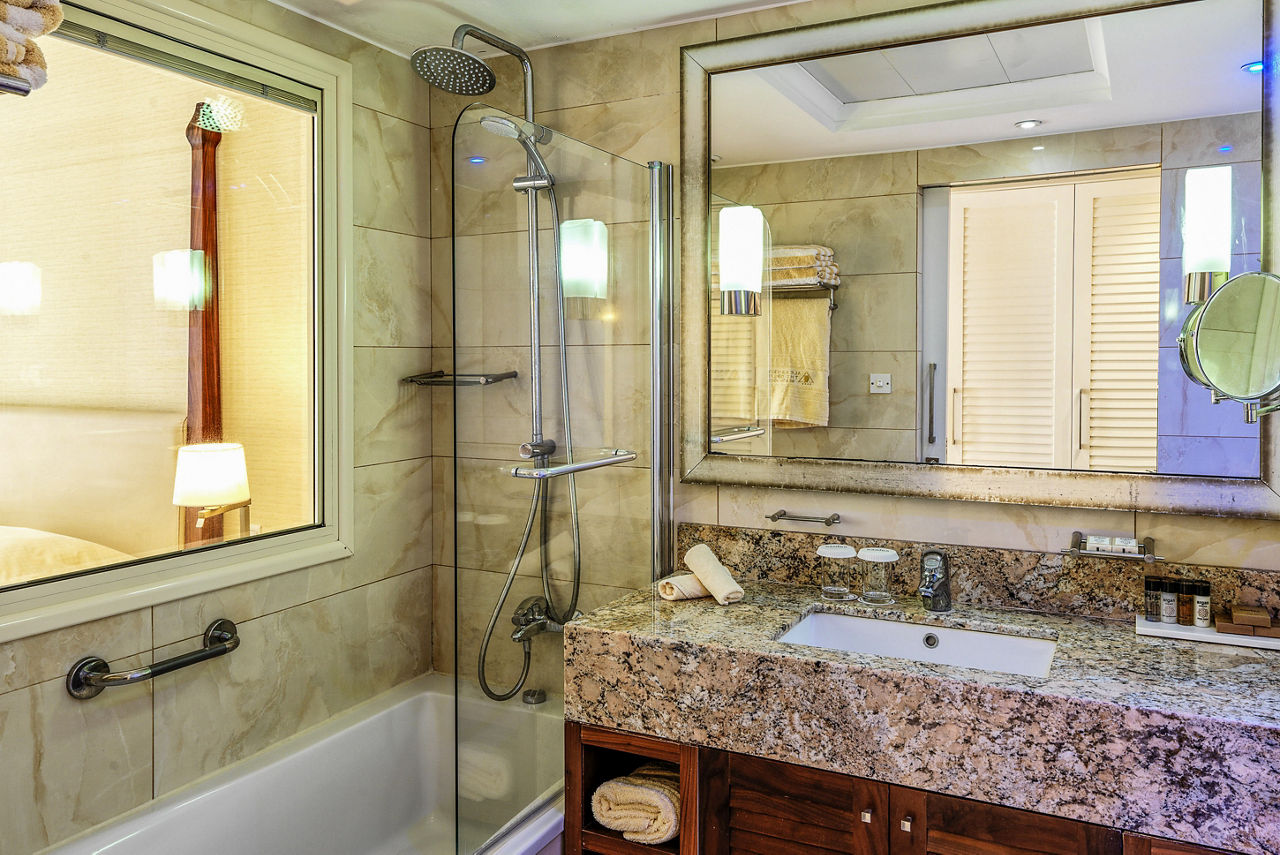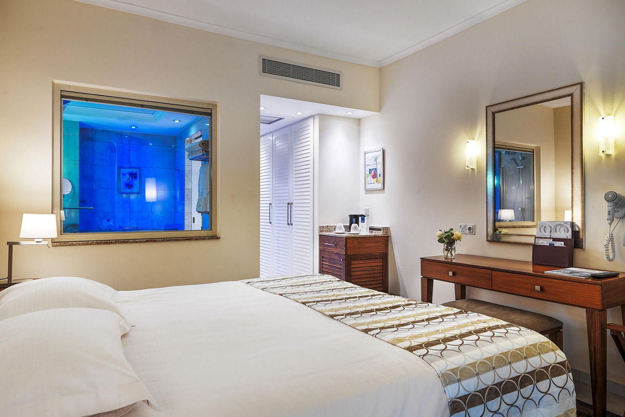 Deluxe rooms sleep up to 3 adults or 2 adults and 2 children and have a full bathroom, hairdryer, air conditioning and satellite TV. (Please note: Deluxe rooms have no balcony and incorporate this extra space into the room itself to create a spacious, relaxing area). Deluxe Side Sea View rooms, Deluxe Sea View rooms, Superior rooms with Sea View and Superior Cabana's with Private Pool and Sea View are also available. (Please note: Deluxe Side Sea View and Deluxe Sea View rooms do have a balcony).