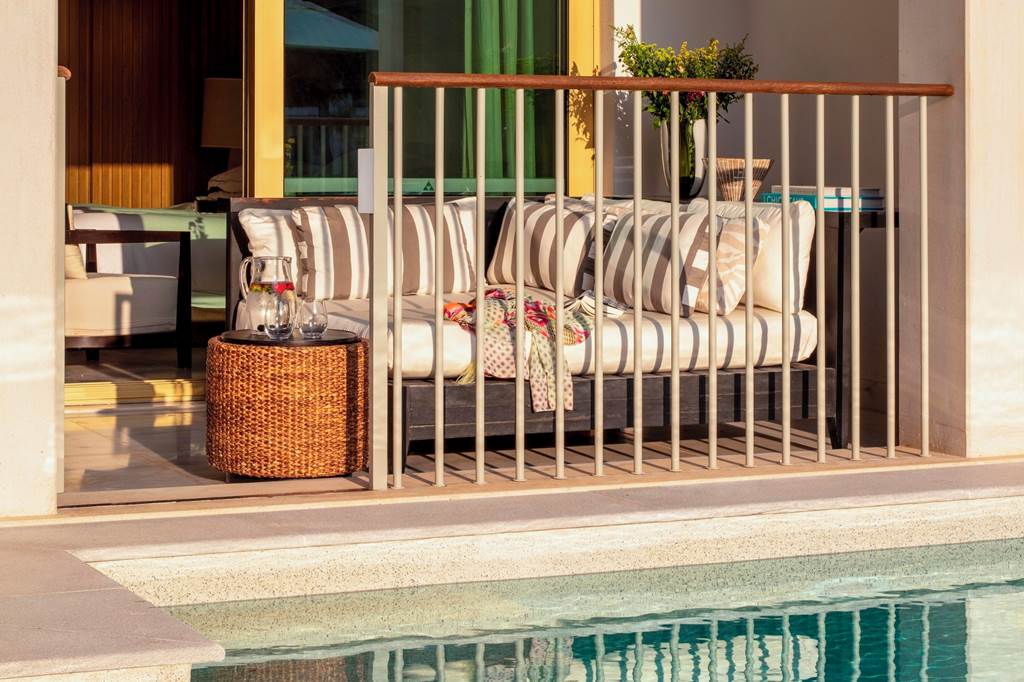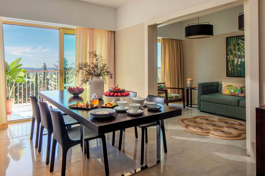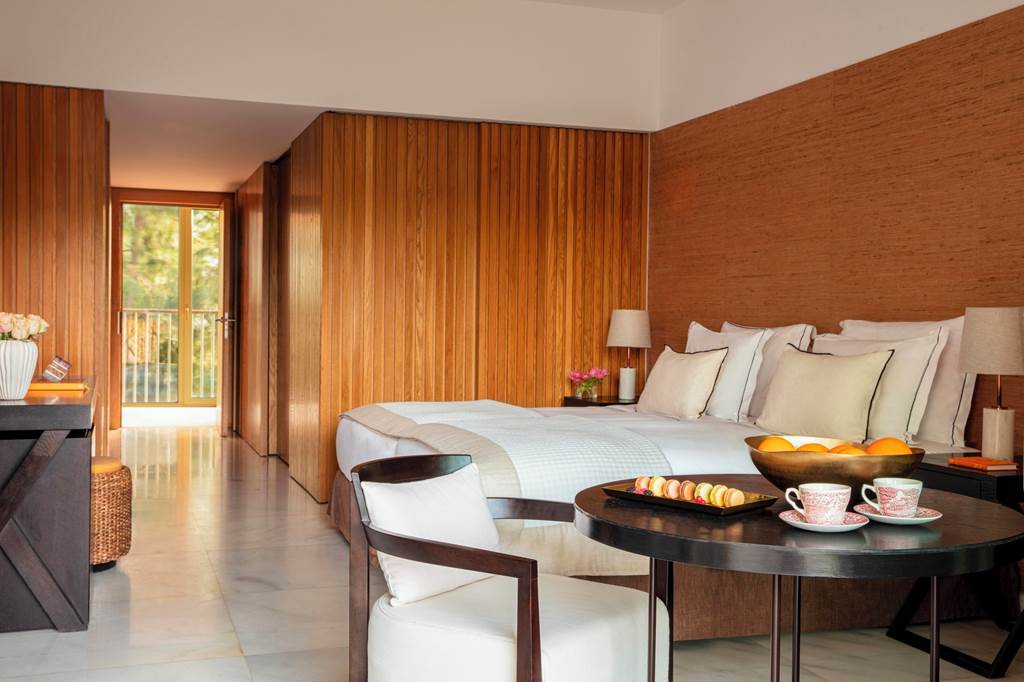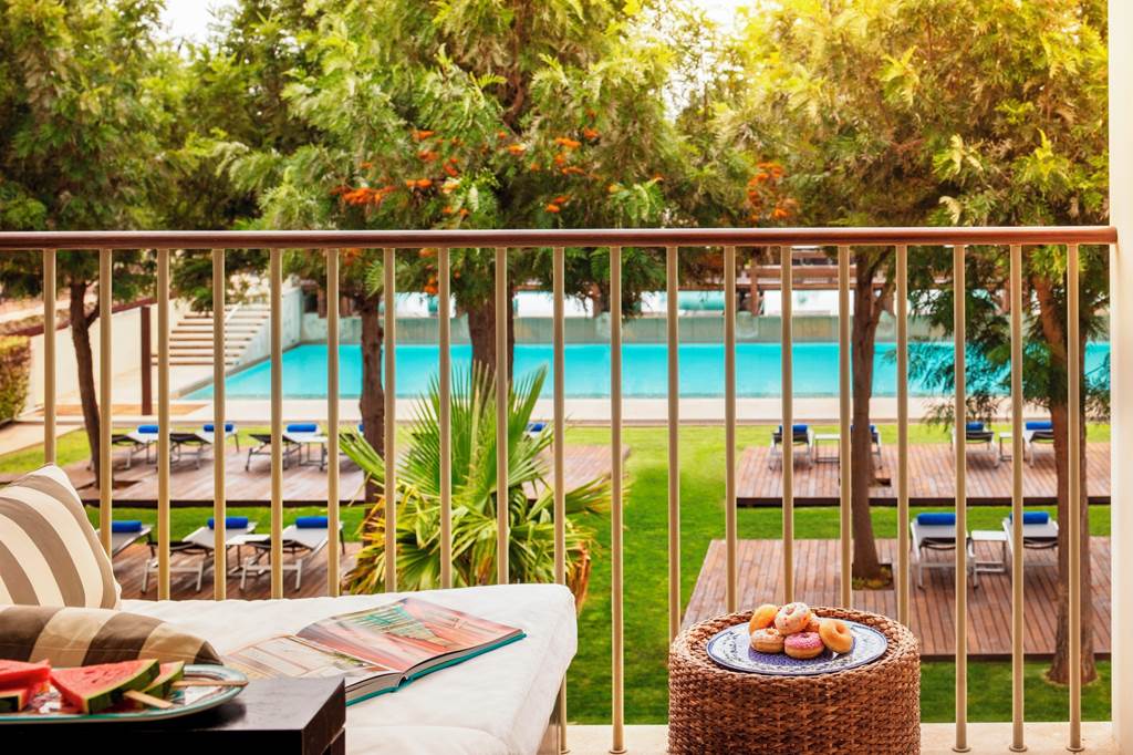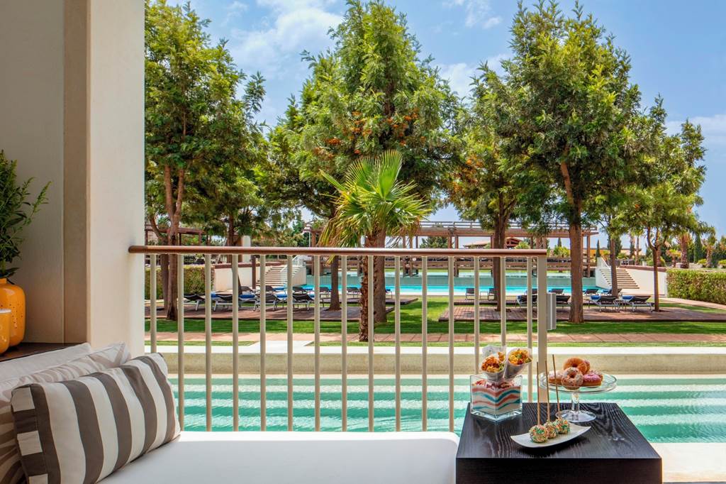 Deluxe Twin rooms with Garden View sleep up to 3 adults and have bathroom containing a bath and separate shower, air conditioning, hairdryer, bathrobe and slippers, flat screen television and balcony. Deluxe Twin rooms with Pool View, Deluxe Twin rooms with Golf View, Junior suites and Sole Use rooms are also available.
