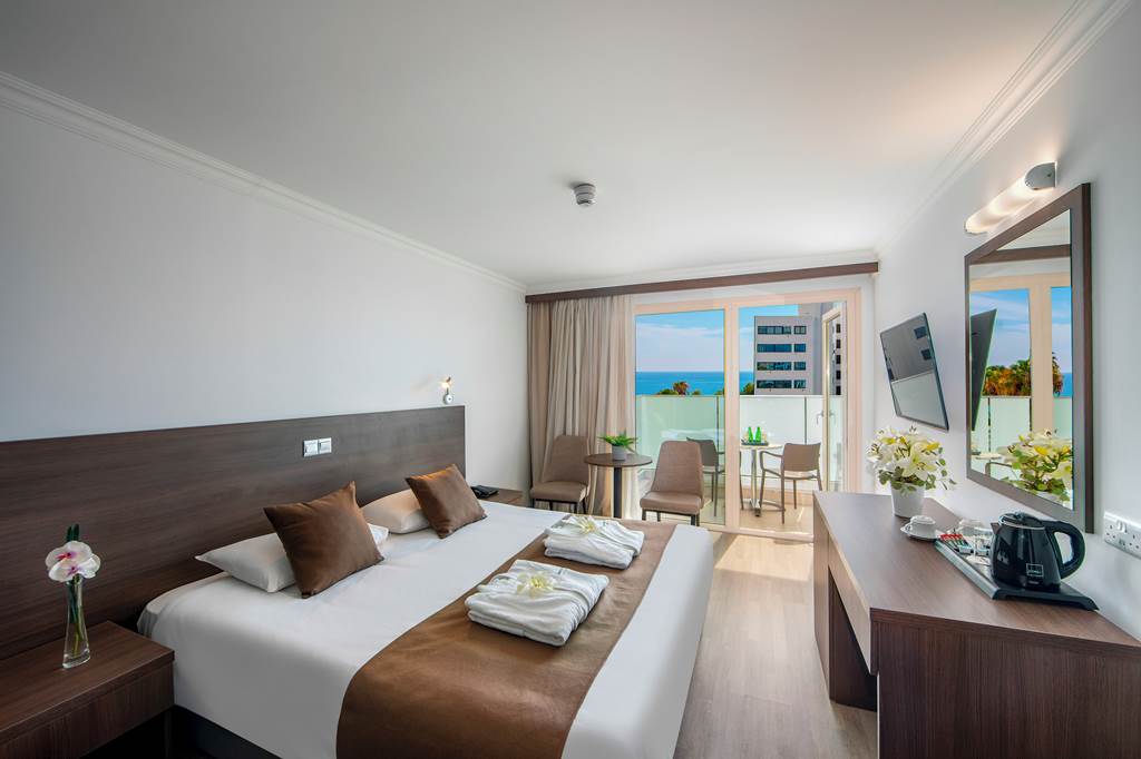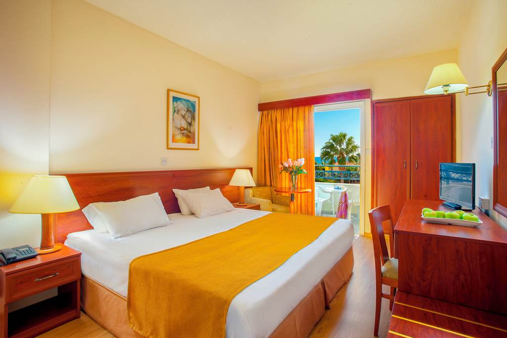 Twin rooms sleep up to 3 adults and have bathroom containing a bath or shower, air conditioning (01 May-31 Oct), hairdryer, flat screen television and balcony or terrace. Twin rooms with Sea View, Superior rooms, Superior rooms with Sea View, Family studios sleeping up to 4 adults and Sole Use rooms are also available.