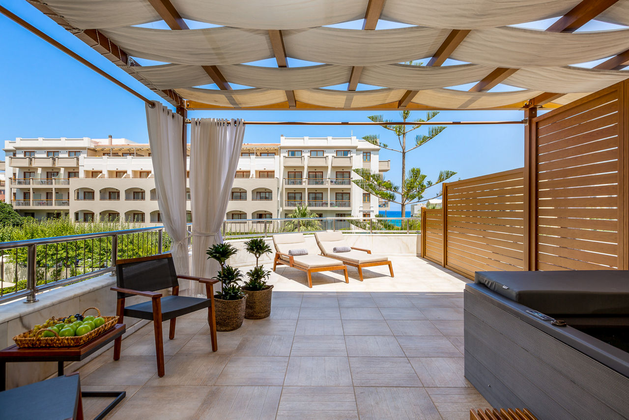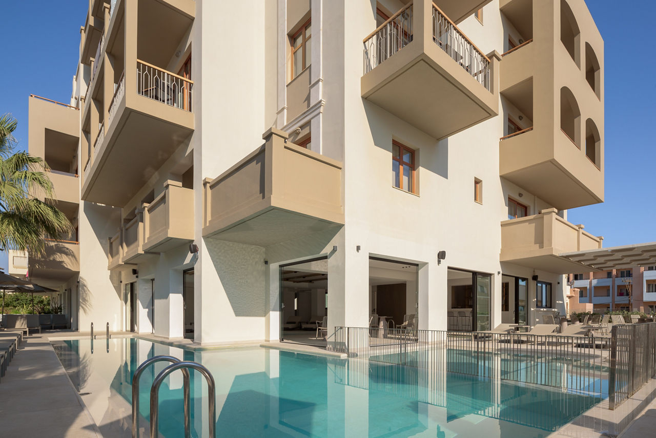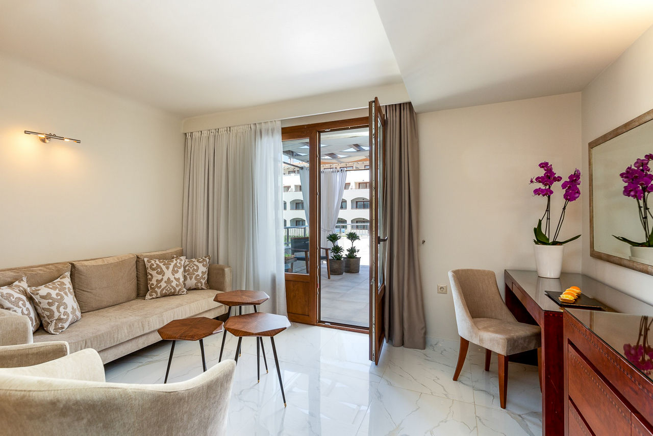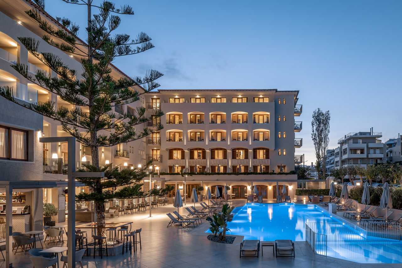Theartemis Palace is a stylish four-star hotel just 200 metres from Rethymnon Beach and a short walk from the historic Old Town. Perfect for families, couples and solo travellers, the hotel combines modern luxury with authentic Cretan charm. Guests can unwind in one of three serene swimming pools, including two outdoor pools with children?s sections, or enjoy a rejuvenating spa treatment and fully equipped fitness centre. Dining options include two on-site restaurants and bars offering Greek and international cuisine. With its prime location, vibrant atmosphere and thoughtfully designed rooms, Theartemis Palace is ideal for those seeking a relaxing, culture-filled holiday in the heart of Crete?s picturesque town of Rethymnon.