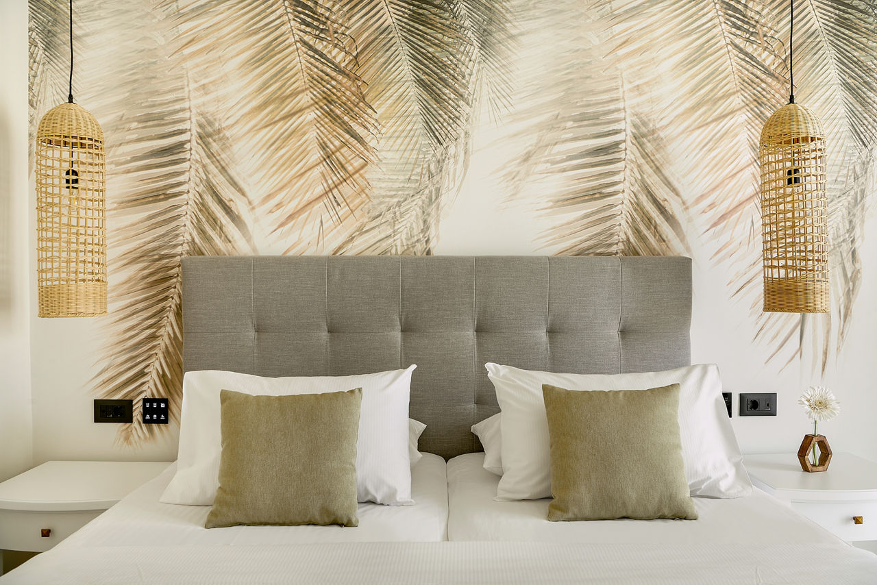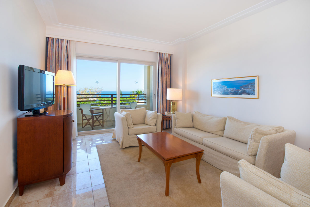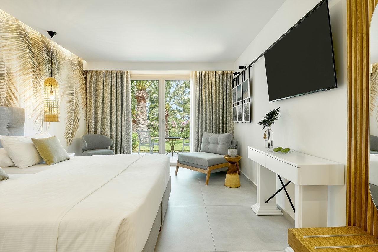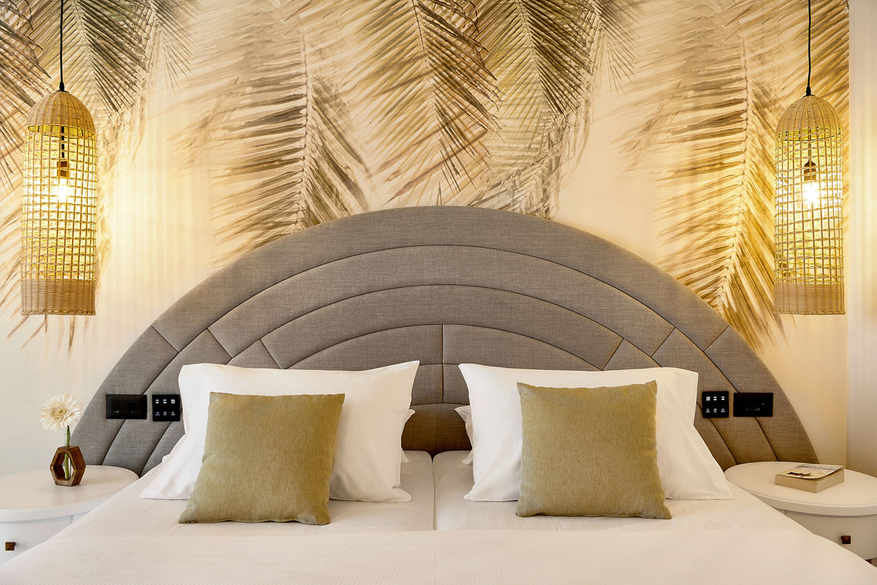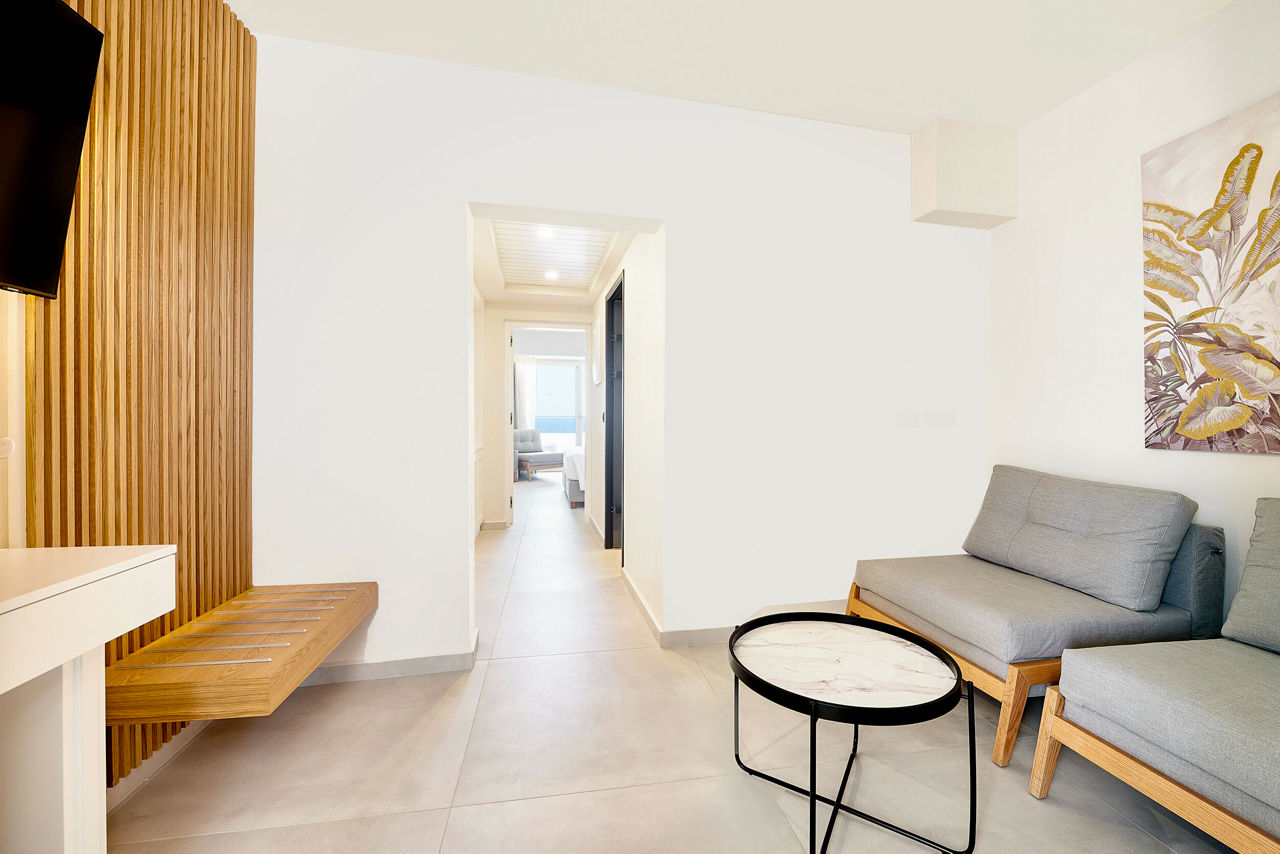 Double and Twin rooms sleep up to 3 adults or 2 adults and 1 child and have a bathroom with shower, air conditioning, hairdryer, fridge, satellite TV and a balcony or terrace. Double and Twin rooms with Sea View, Family rooms, Family rooms with Sea View, Bungalows, Bungalows with Sea View, Junior suites with Sea View and rooms for Sole Use are also available.