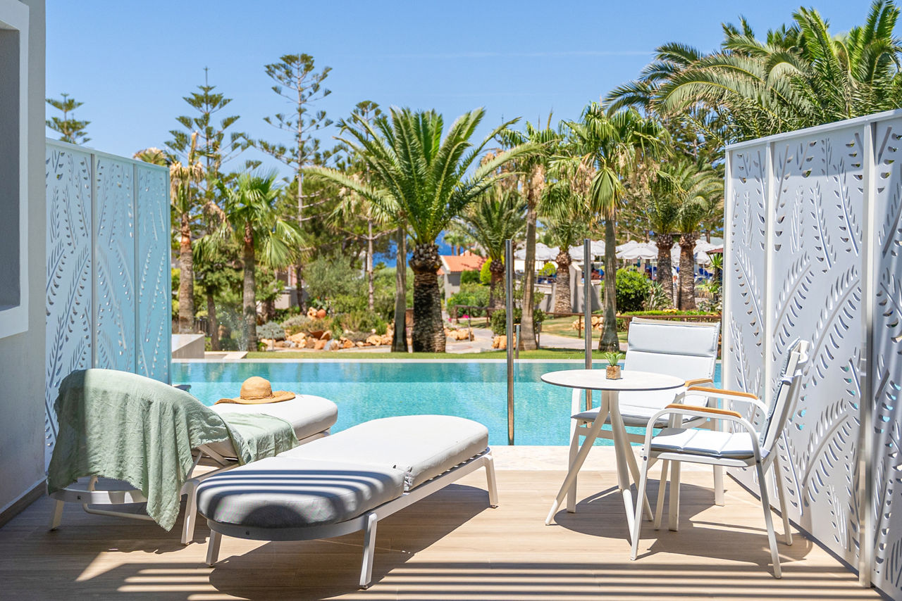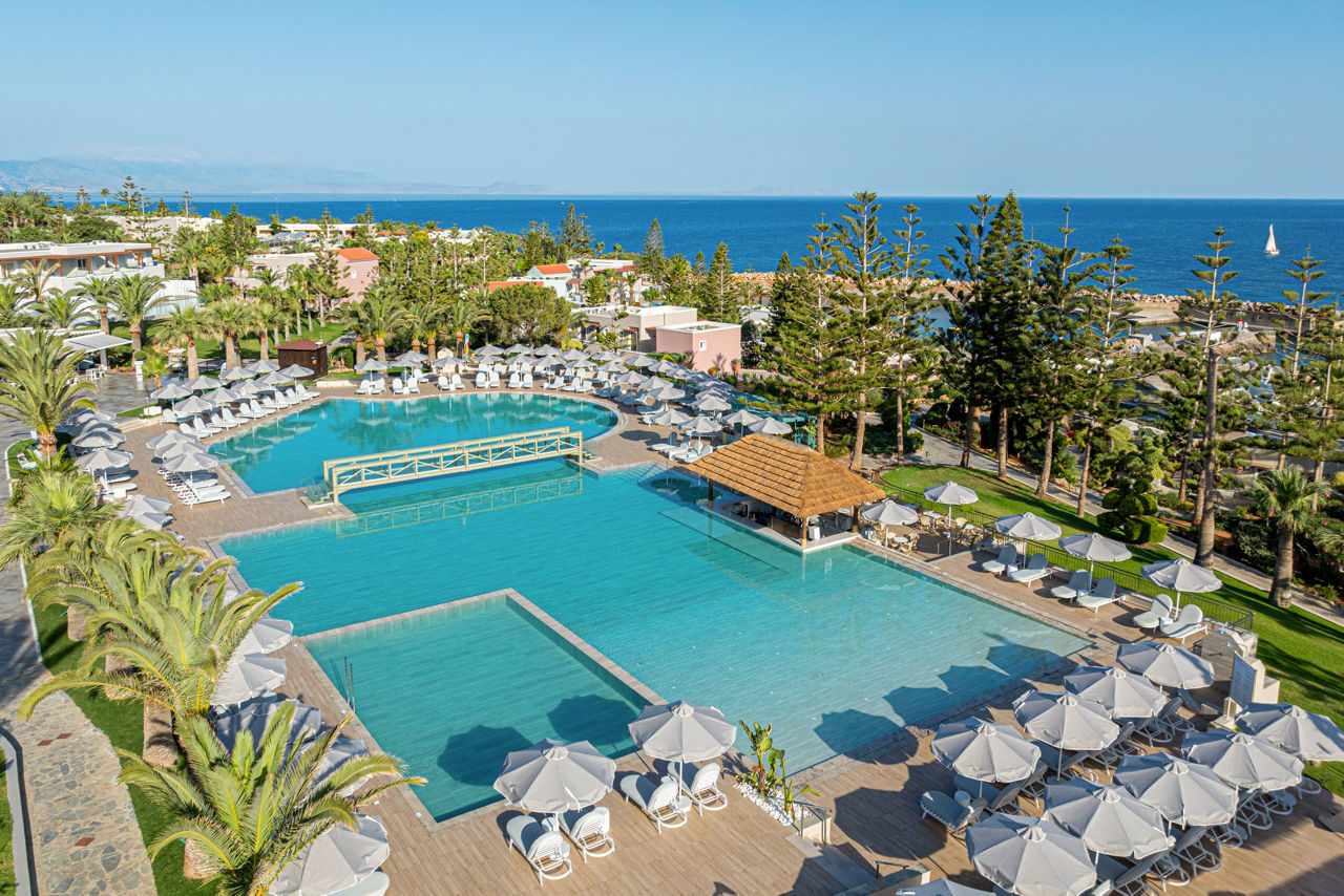 With beautiful gardens and a beachfront location, Iberostar Creta Marine is a great choice for a holiday in Crete. There is plenty to keep the whole family entertained, especially with the brand new waterpark located at the sister hotel Iberostar Waves Creta Panorama