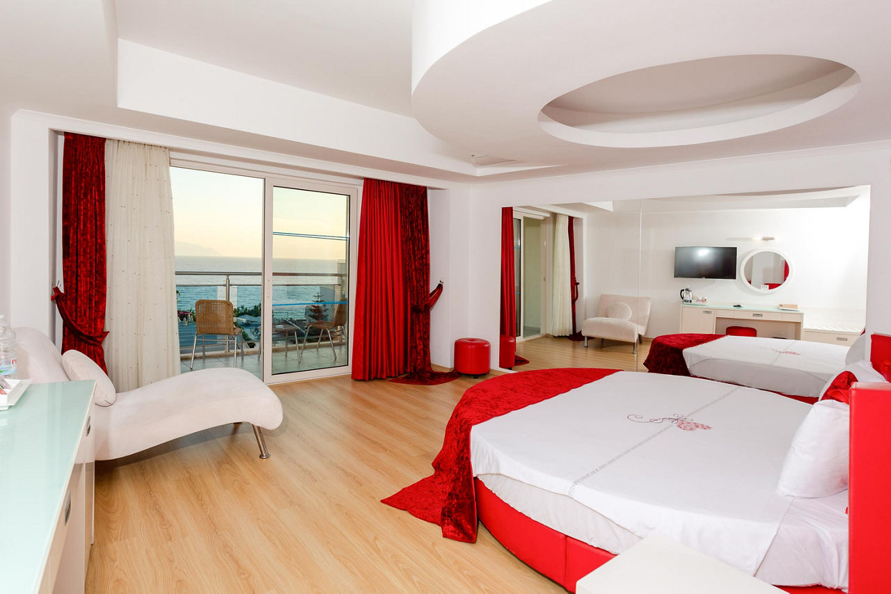 Did someone say private beach? This shorefront stunner blends modern style and traditional Turkish design to create a space that?s wonderful for couples, families and friends alike. What?s more, it?s less than 4km from Kusadasi with its castle, basilica and enchanting architecture. To call this hotel complex big is an understatement ? we?re talking 38,000 sq m, with highlights including an adult aqua park, swish pool scene, on-site spa and a huge choice of bars and restaurants. Enjoy laidback days at the beautiful exclusive stretch of sand that?s just 400m away and upbeat evenings back at the hotel. Look out for the exciting entertainment with professional shows!