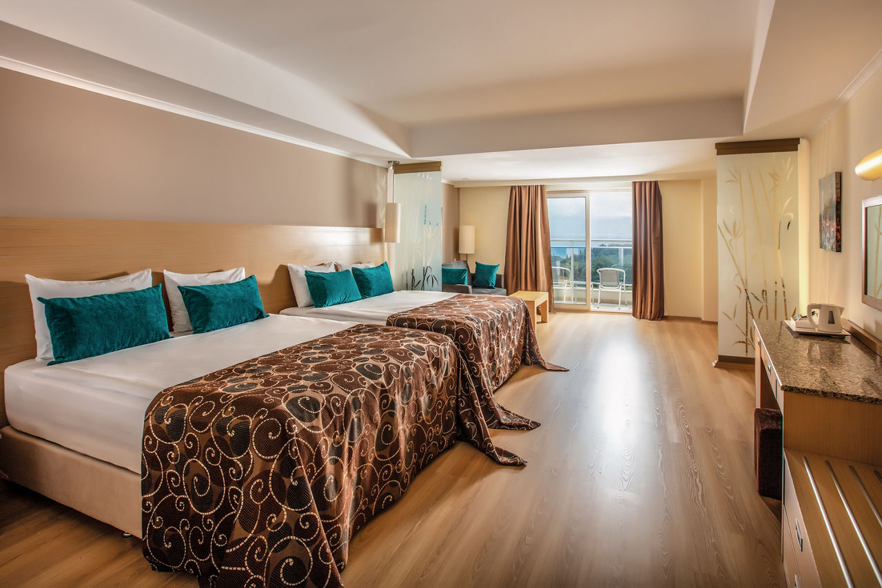 Standard Double and Twin rooms sleep up to 3 adults and have bathroom with bath or shower, hairdryer, air conditioning, satellite TV, tea and coffee making facilities and balcony or terrace. Sole Use rooms and room upgrade options are also available.