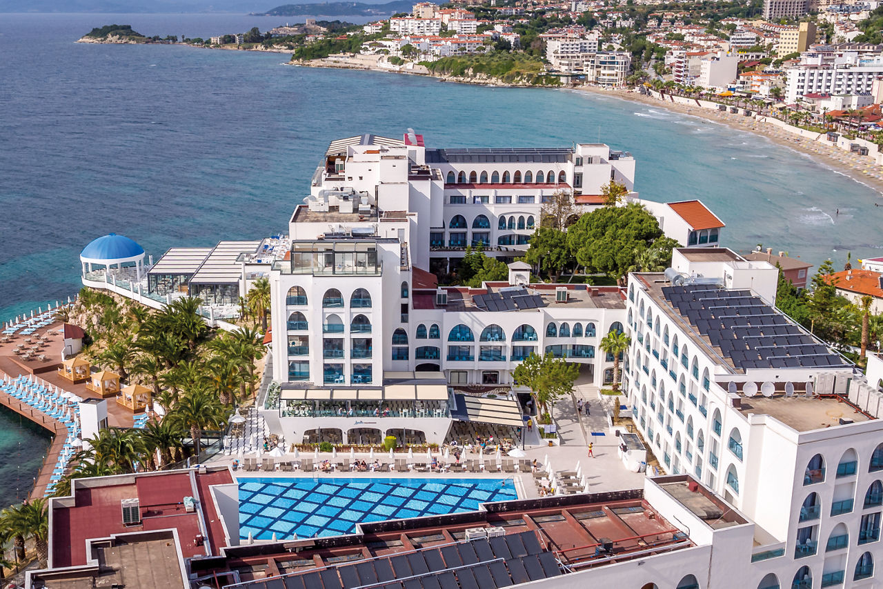 Located in the lovely Ladies Beach area of Kusadasi, Infinity by Yelken Resort & Aquapark is sure to tick all your holiday boxes. With a fantastic aquapark for the kids, a stylish infinity pool and a sunbathing terrace that looks out towards the island of Samos, there's plenty of facilities to enjoy. Rooms are modern and spacious and there's a great All Inclusive Plus package to top it all off. You're sure to have a memorable holiday at this exciting resort!