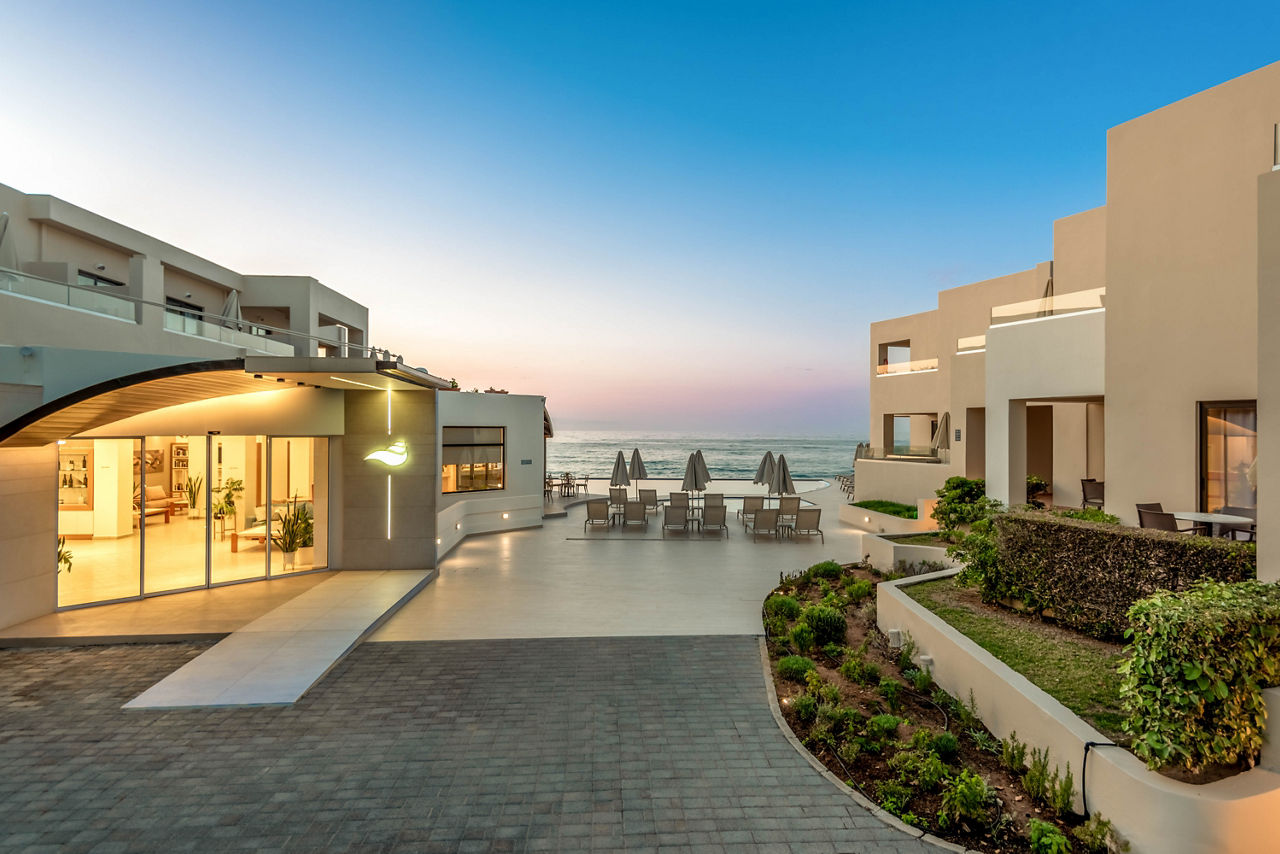 Blue Dome Hotel boasts a prime beachfront setting in the vibrant yet picturesque town of Platanias. Bask in the sun by the glistening pool or savor a refreshing drink from the bar while admiring breathtaking sea views. The hotel's tastefully designed apartments and studios blend comfort with convenience and with bars and restaurants nearby and the beach just a short walk away, you'll have everything you need for a great stay in Crete.