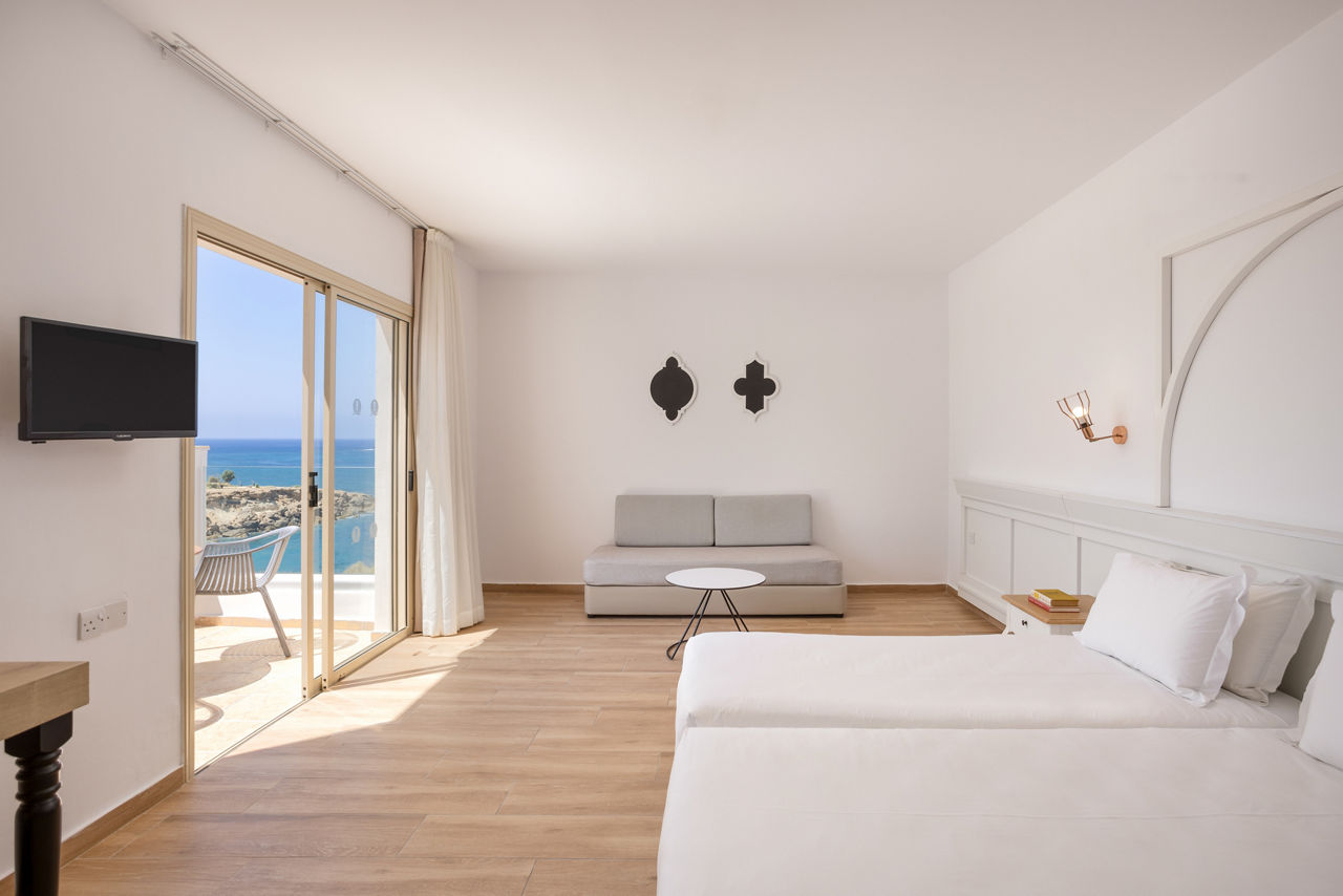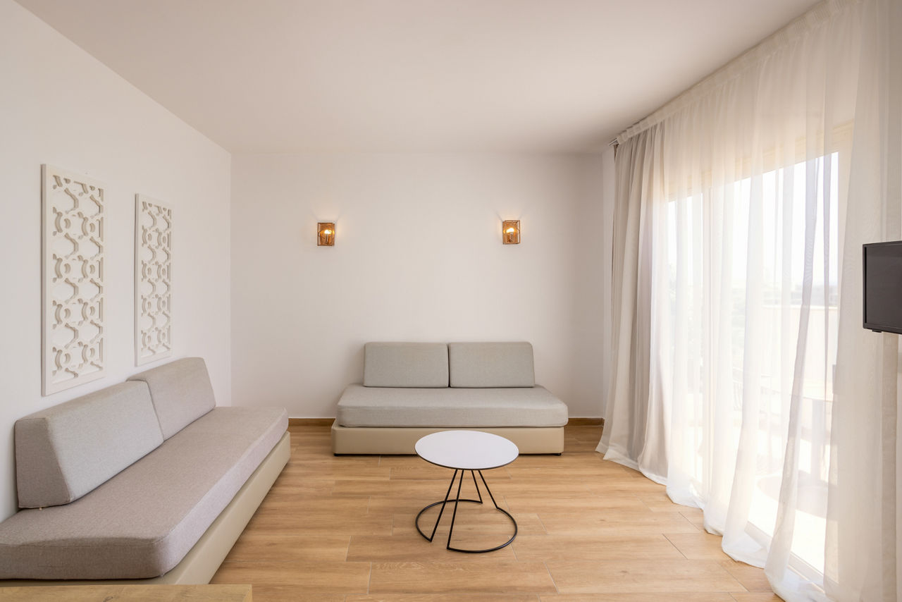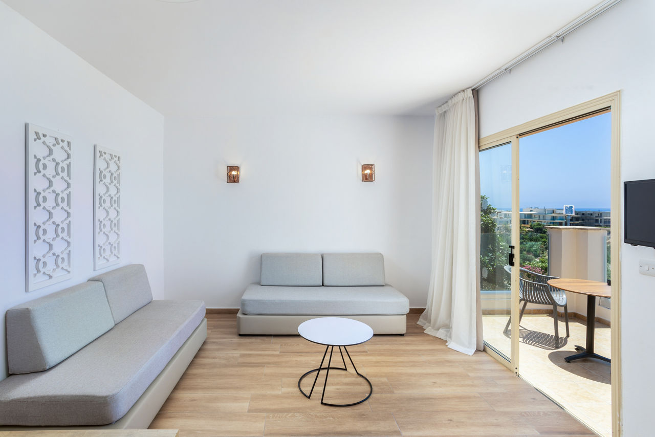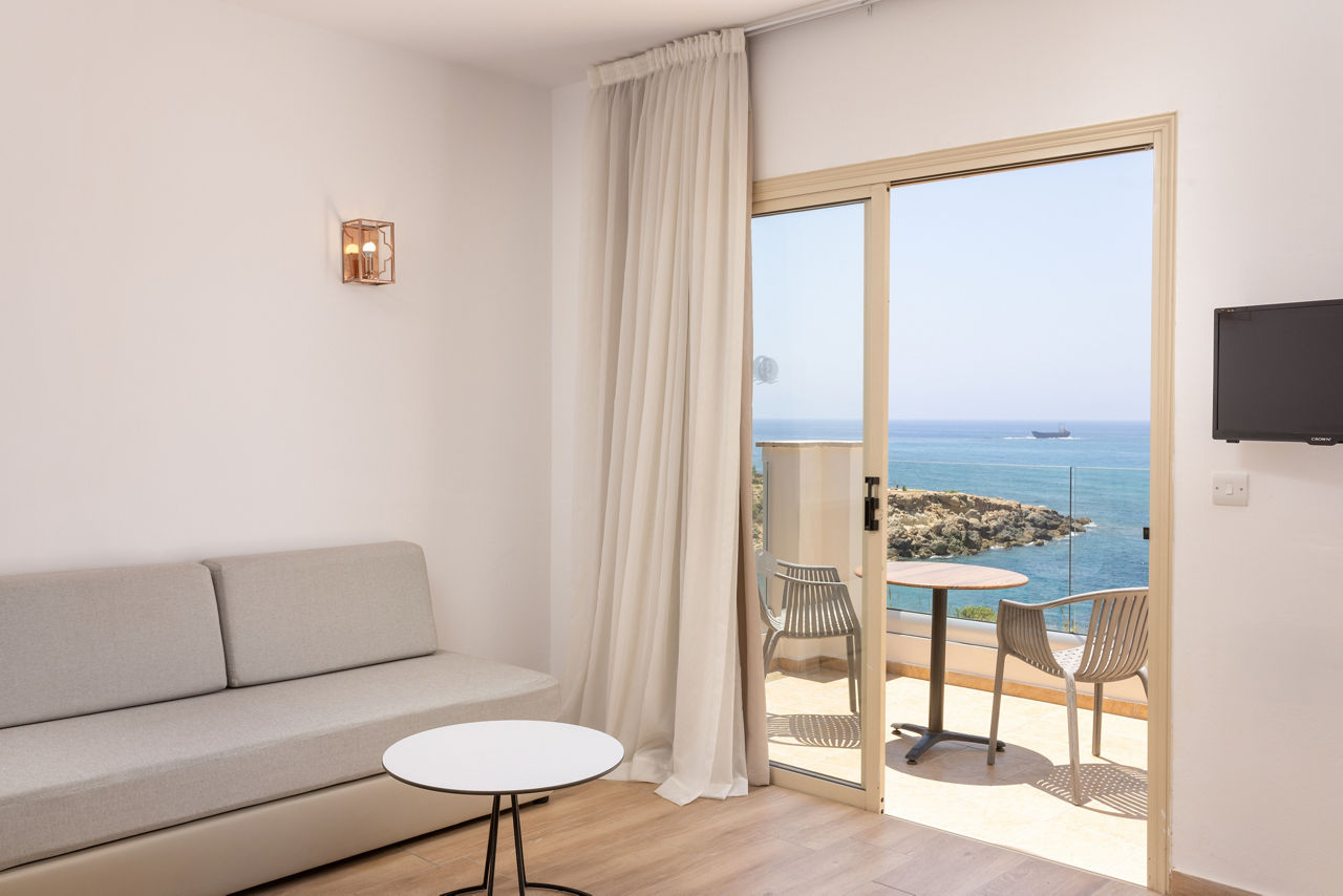 Studios sleep up to 3 adults and have bathroom containing a bath, air conditioning, kitchenette with double cooking rings, toaster, kettle and a mini-fridge, television and a balcony. Studios with Side Sea View, Studios with Sea View, One Bedroom apartments sleeping up to 4 adults, One Bedroom apartments with Side Sea View and One Bedroom apartments with Sea View are also available.