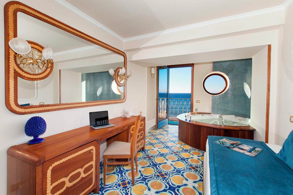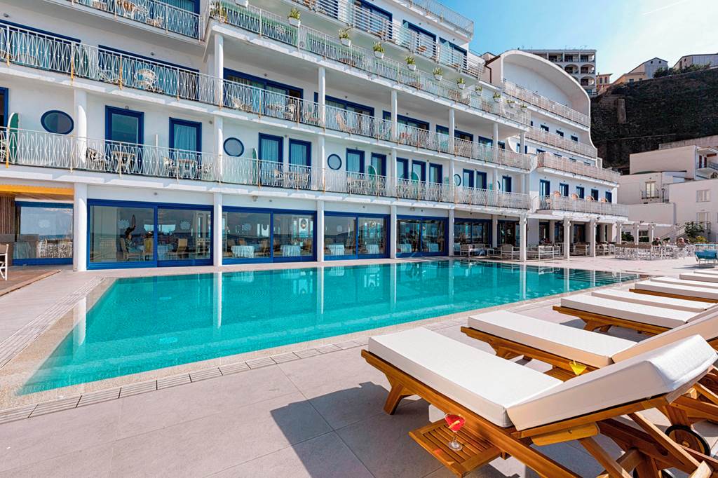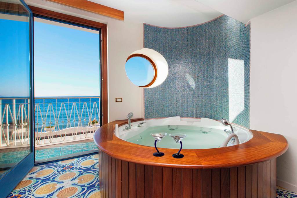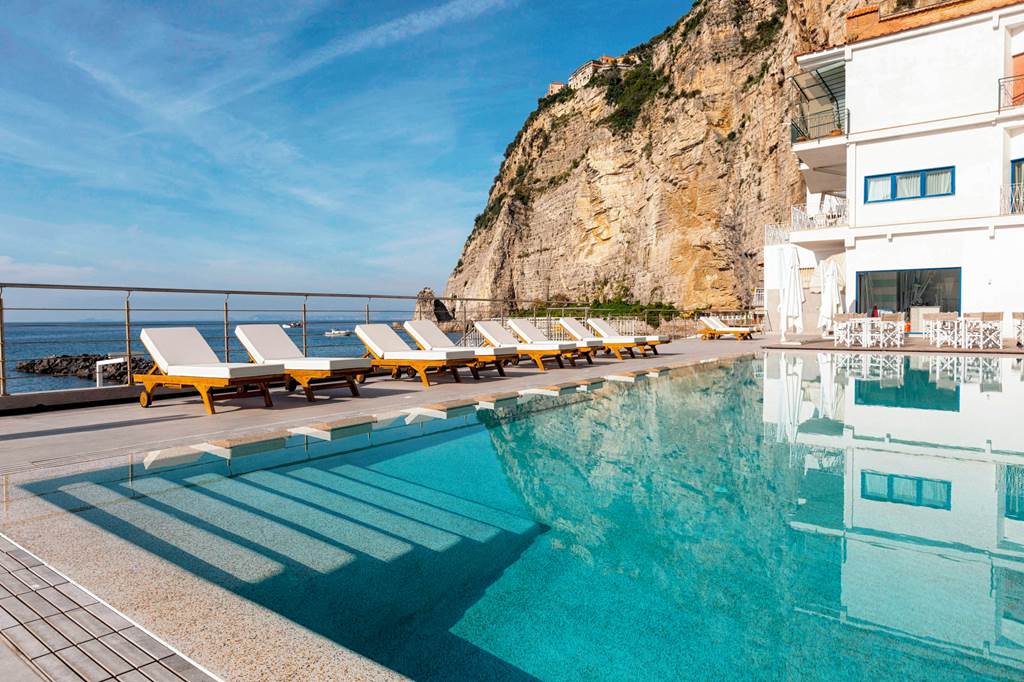 With sweeping panoramic views across the sparkling waters of Meta di Sorrento, Alimuri Bay Resort offers a beachfront retreat infused with authentic Italian charm. Blending rustic character with modern comforts, the hotel creates a warm and welcoming atmosphere that captures the spirit of traditional Italy. When you're not out exploring the dramatic beauty of the Sorrentine Peninsula, unwind by the seafront pool or on the stretch of pebble beach. For those looking to soak up the buzz of nearby Sorrento, the hotel?s convenient shuttle service makes it easy to dip into the vibrant town life, then return to the peaceful rhythm of the coast.
