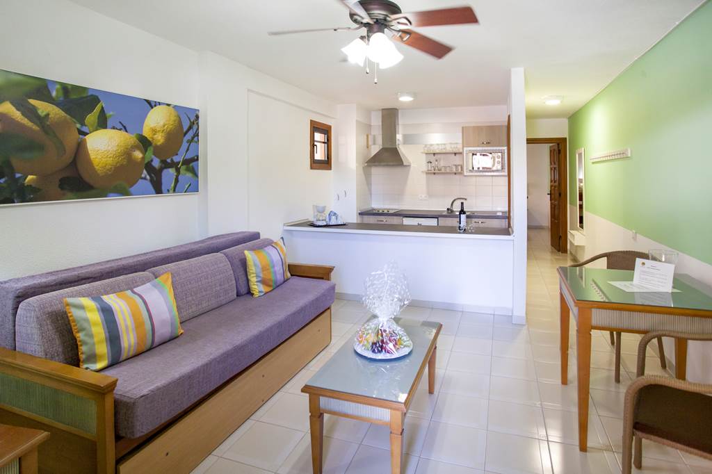 One Bedroom apartments sleep up to 3 adults and 1 child and have bathroom containing a shower, flat screen television, safety deposit box* double cooking ring, fridge, kettle, microwave, toaster, Wi-Fi* and balcony or terrace. Some apartments are of a duplex style. Room upgrade options are also available.