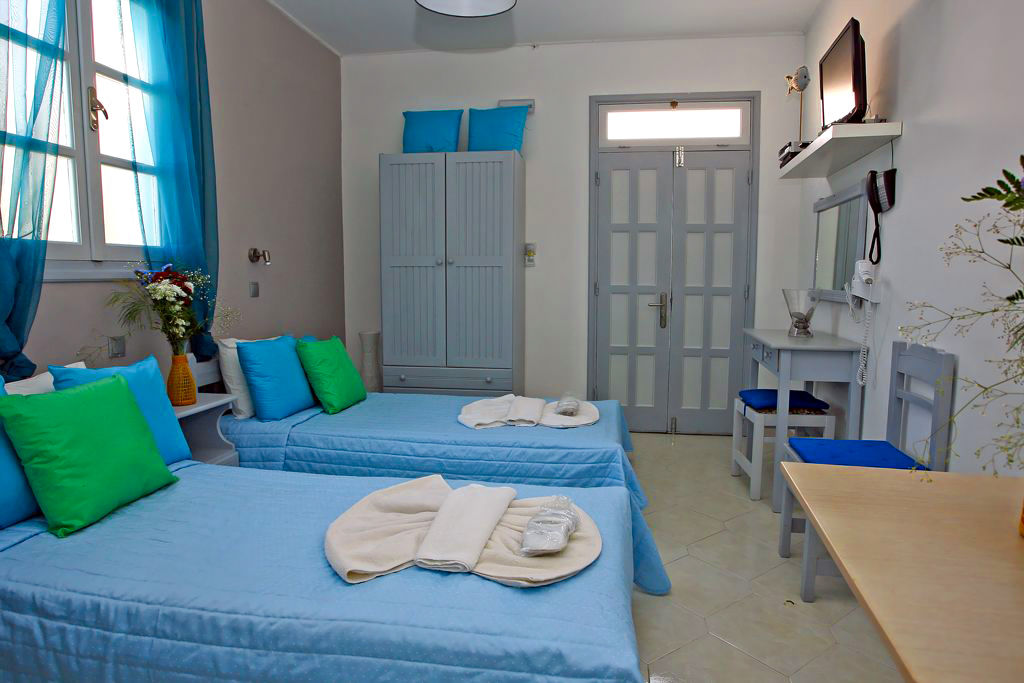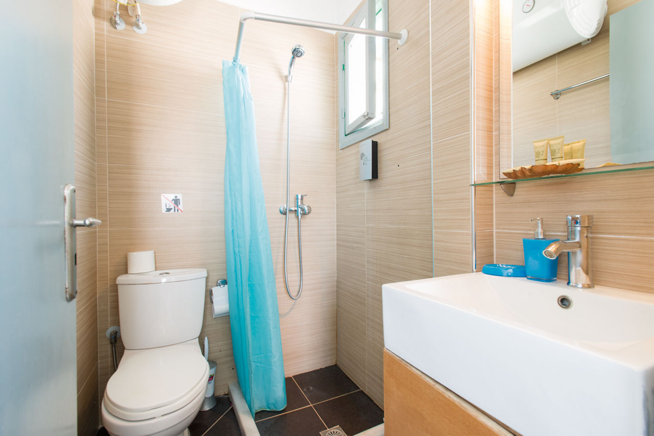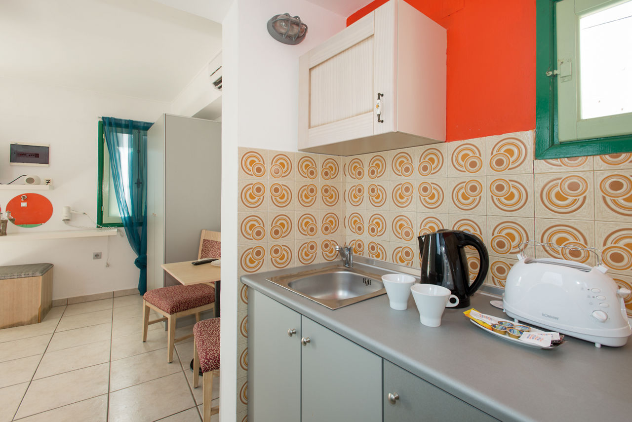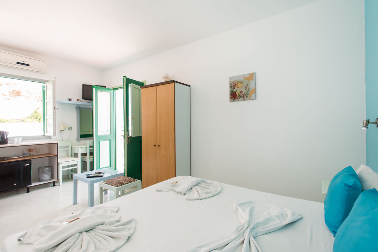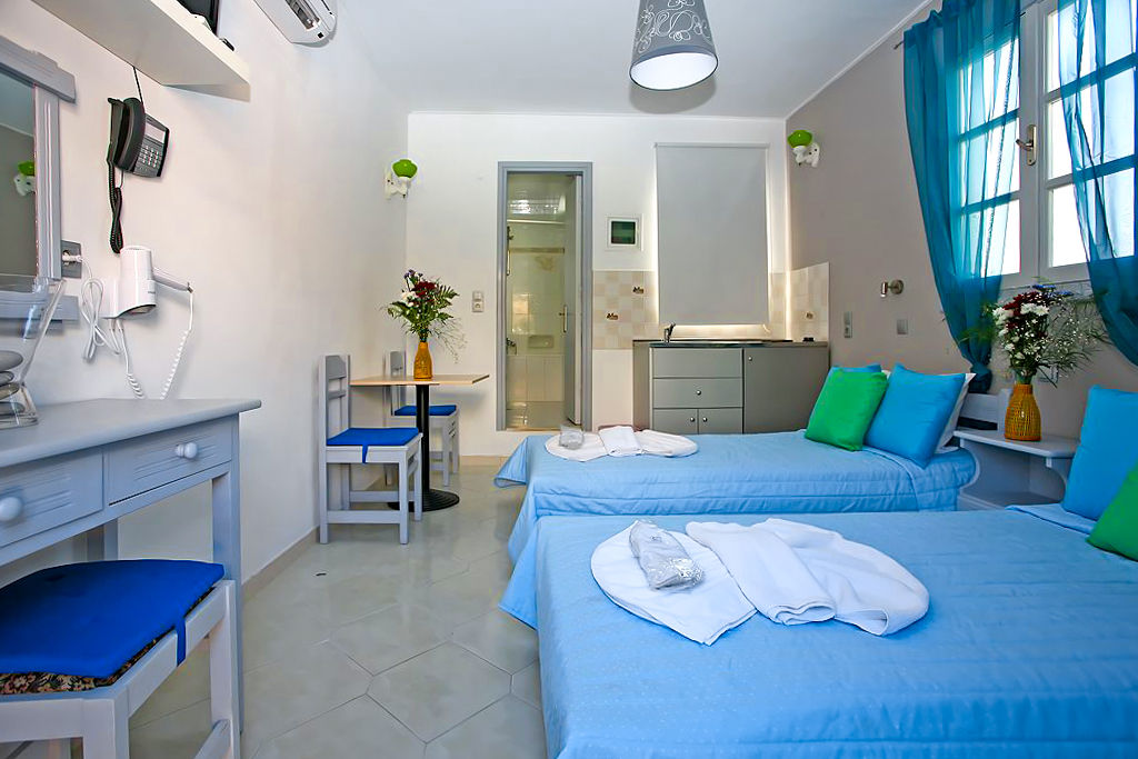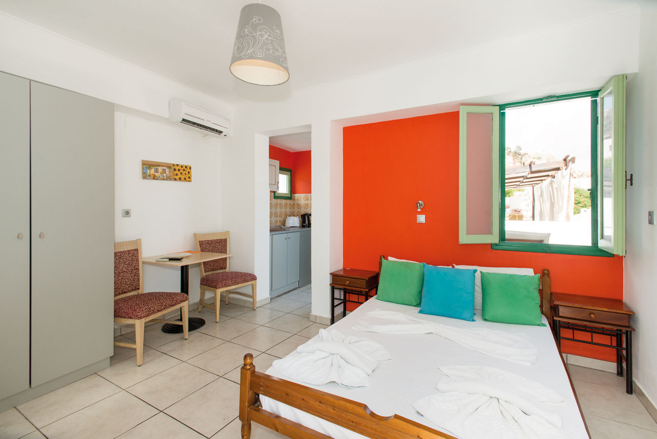 Studios sleep up to 2 adults and have bathroom containing a shower, air conditioning, fridge, tea and coffee making facilities and a terrace.