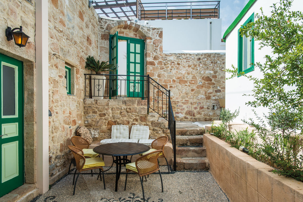 Situated in a tranquil location in the old village, the traditional whitewashed buildings of Xenones Lindos feature exposed stone walls, and fantastic sea views, overlooking the Acropolis of Lindos. The studios and apartments are well furnished and offer guests shared outdoor space on the ground level cobbled courtyards across each of the four blocks. Enjoy breakfast or take a drink on the rooftop terrace and watch the world go by on the streets below. As Xenones Lindos is positioned within close distance of local shops, restaurants, and a nearby fishing village, you can be sure of the perfect scenic break.