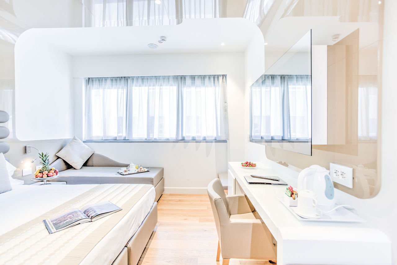 Standard Double or Twin Rooms sleep up to 2 adults and have bathroom containing a shower, air conditioning, hairdryer, flat screen television, kettle, minibar* and safety deposit box. Room upgrade options are also available.