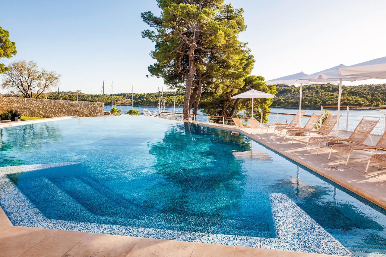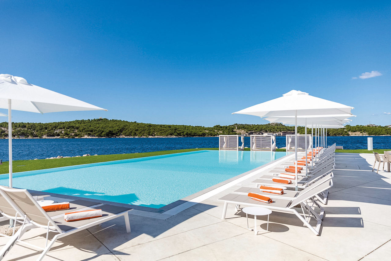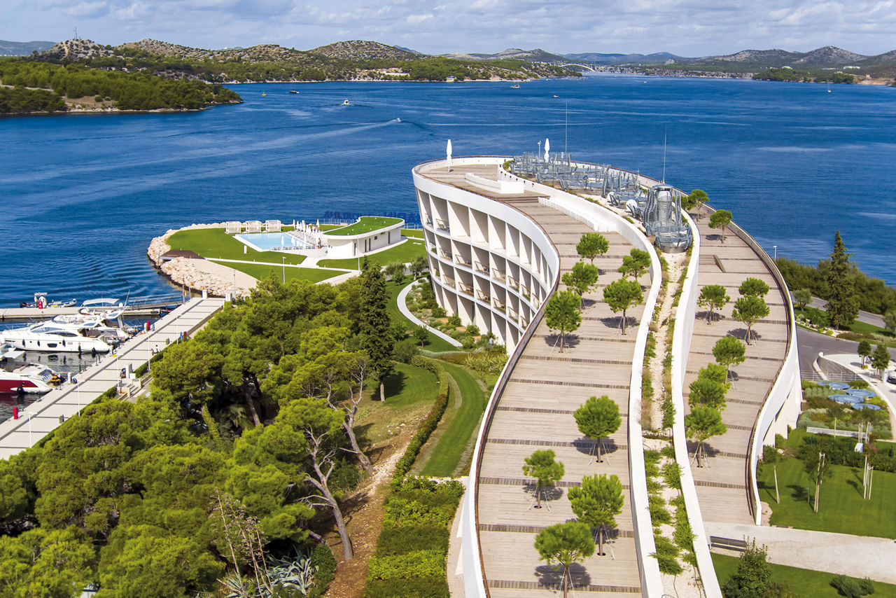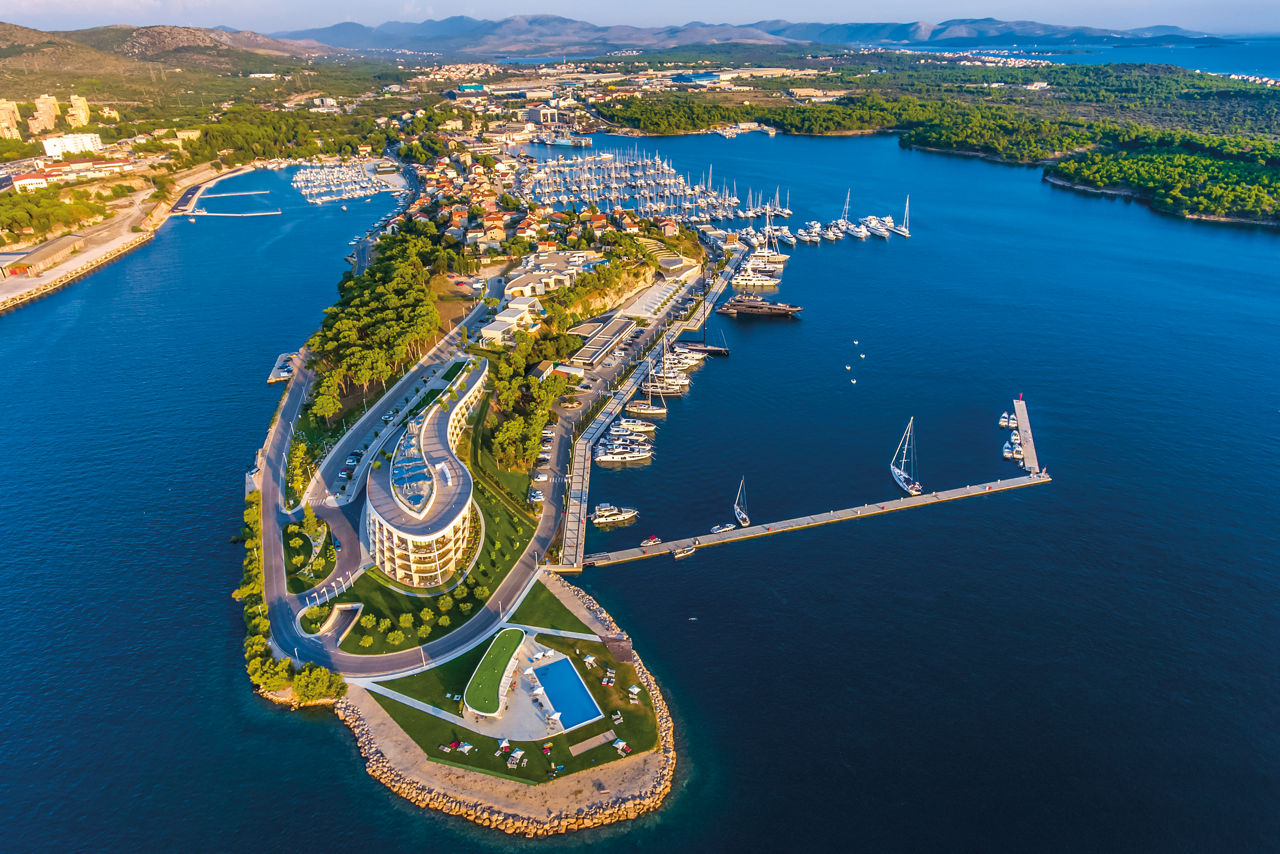 DResort is a stylish and contemporary retreat located on the Dalmatian coast, offering stunning views of the Adriatic Sea and ?ibenik's historic skyline. The property features elegantly designed rooms, suites, and villas, ensuring a comfortable and luxurious stay. Guests can enjoy top-notch amenities, including a rejuvenating spa, gym, outdoor pools and fine dining experiences. With its modern architecture and prime marina-side location, DResort is an excellent choice for a memorable getaway.