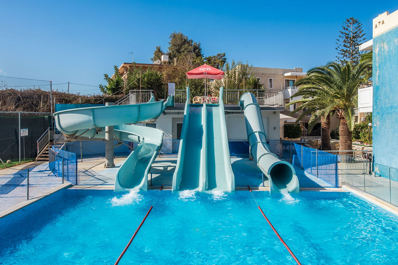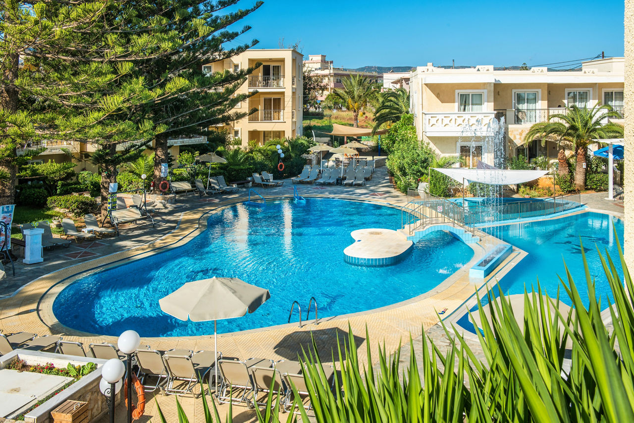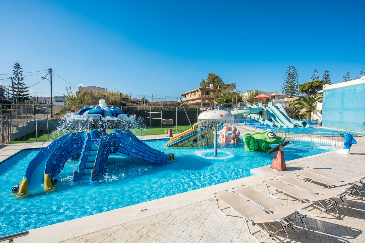 Welcome to Kastalia Village, where tropical surroundings and vibrant yellow décor set the tone for a fun-packed family stay. If you can peel the kids away from the splash park?s slides, water cannons and pirate ship, the sugary sands of Crete are just 500m away! Spend days unwinding by the adults-only pool, and evenings in nearby Kolymbari sampling mouth-watering local dishes in traditional tavernas ? you?re sure to find something to please even the fussiest eaters. As dusk falls, retreat to your spacious studio or apartment to continue the quality family time. If you were looking for a charming base in Chania, you?ve found it!