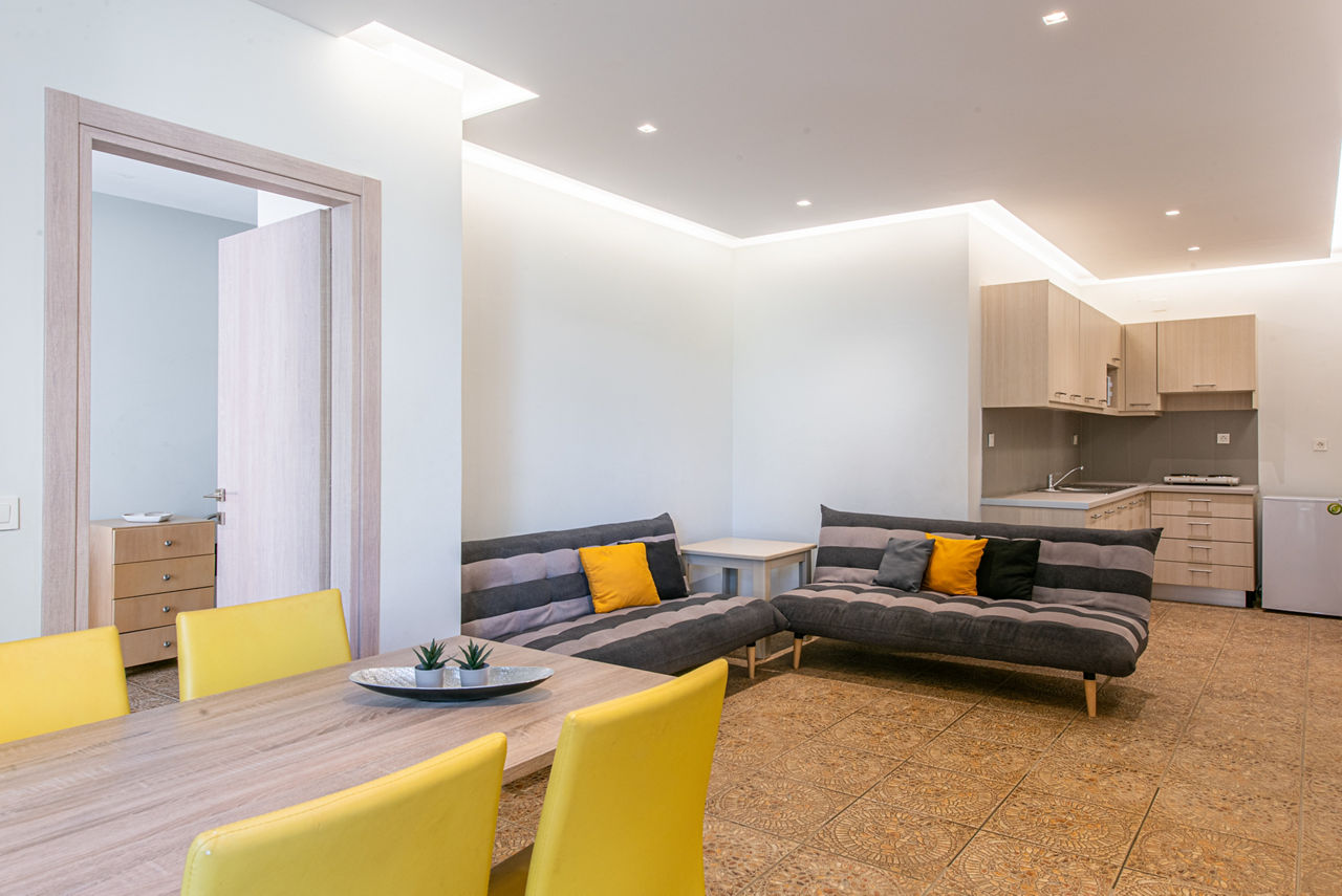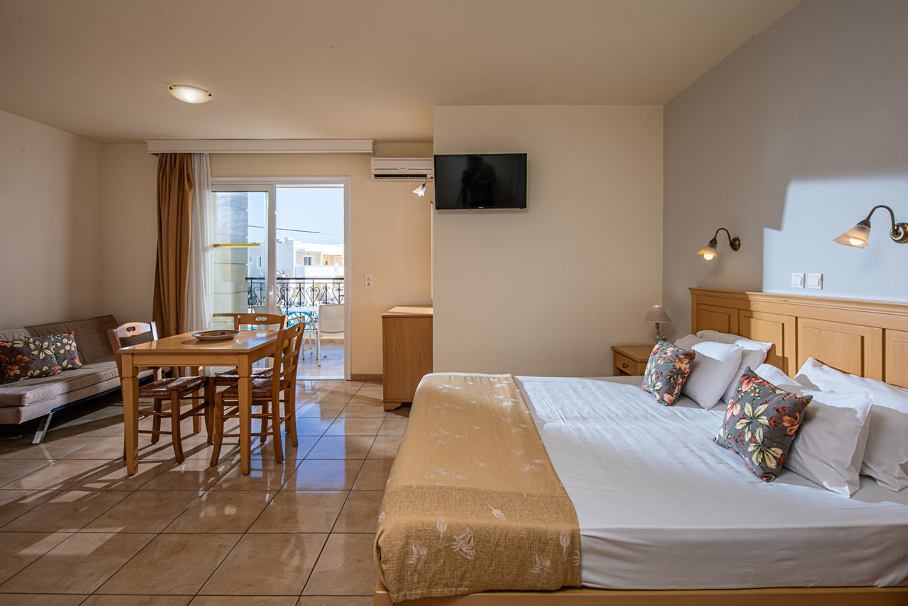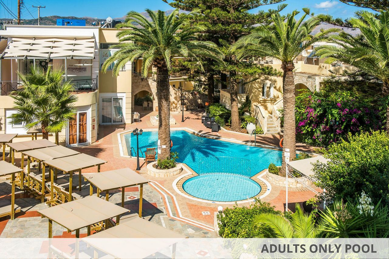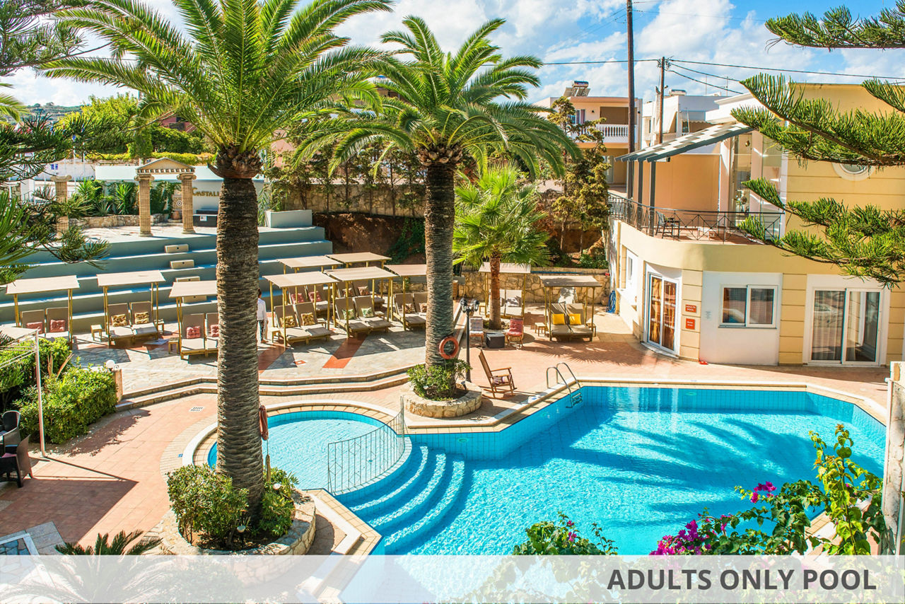 Welcome to Kastalia Village, where tropical surroundings and vibrant yellow décor set the tone for a fun-packed family stay. If you can peel the kids away from the splash park?s slides, water cannons and pirate ship, the sugary sands of Crete are just 500m away! Spend days unwinding by the adults-only pool, and evenings in nearby Kolymbari sampling mouth-watering local dishes in traditional tavernas ? you?re sure to find something to please even the fussiest eaters. As dusk falls, retreat to your spacious studio or apartment to continue the quality family time. If you were looking for a charming base in Chania, you?ve found it!