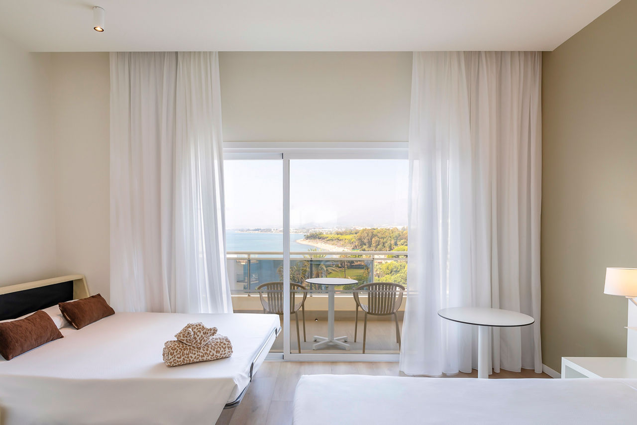 Standard Double rooms sleep up to 3 adults and 1 child and have bathroom containing a bath or shower, air conditioning, television, mini-bar*, safety deposit box* and balcony. Room upgrade options are also available.