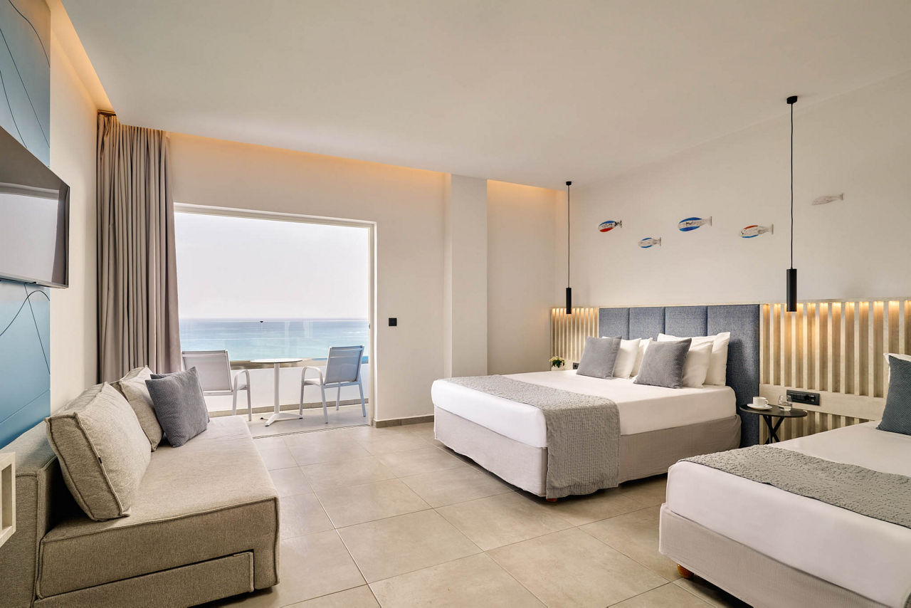 Calling all beach bums! It?s beach bliss here at Blue Sea Beach Resort, as you?re right on the shore of Faliraki?s Blue Flag stretch. Let your worries melt away as you soak up the sun, and All Inclusive comes as standard here for ease. Four restaurants and three bars are on hand for fabulous food and drinks, while the kids? club and entertainment programme will keep the little ones occupied all day long. Swim in the four pools, relax in the spa or enjoy a lively night out in Faliraki. It?s only a ten-minute drive away and packed full of bars, English-style pubs and nightclubs.