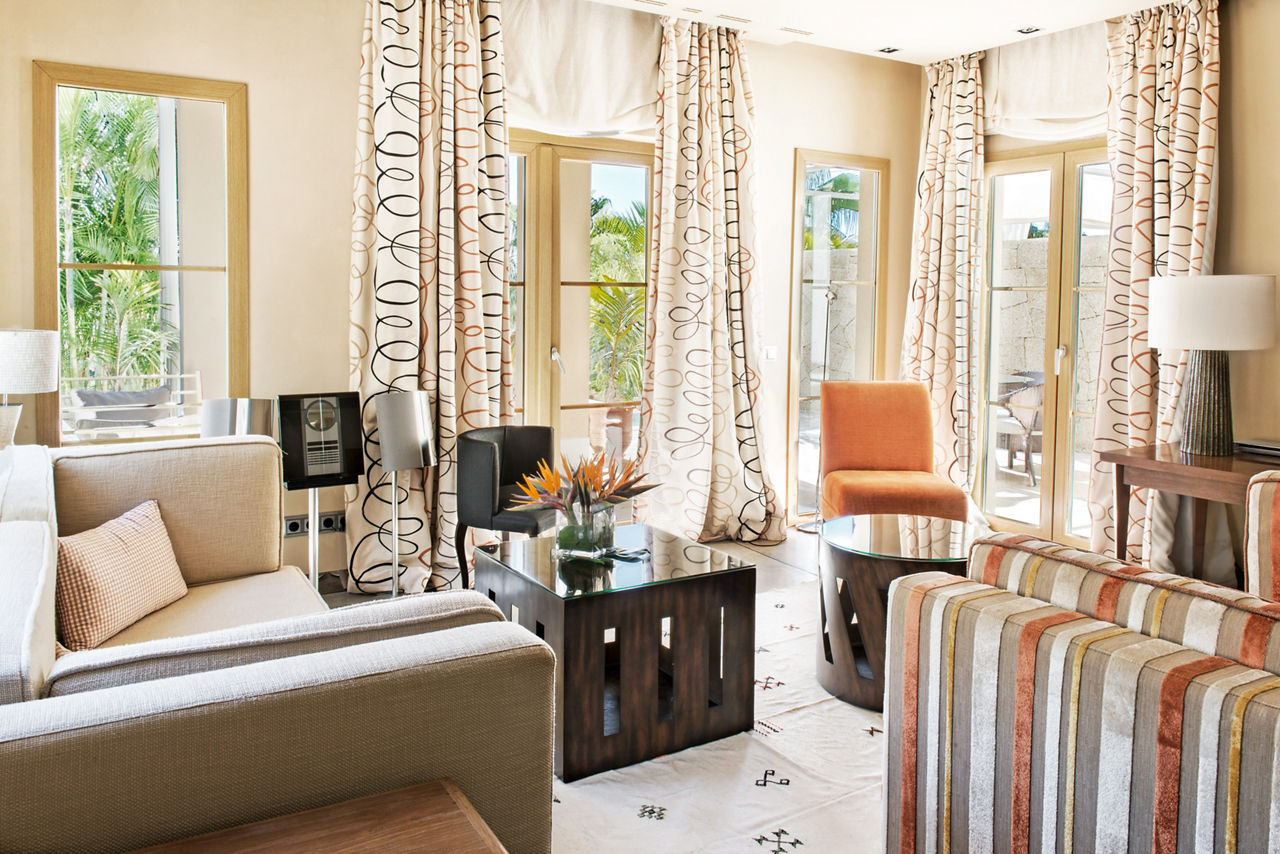 Villa Las Palmeras is 202sqm with 1 bedroom sleeping up to 2 adults and 1 child with private heated infinity pool, 24 hour butler service, living room, fully equipped kitchen, terrace, 2 flat screen TV?s, sound system, air-conditioning, full bathroom with bath and shower, a la carte aromatherapy bath menu and designer furnishings. Villas Las Retamas is 256sqm with 1 bedroom duplex style sleeping up to 2 adults and 1 child with private heated infinity pool, 24 hour butler service, living room, fully equipped kitchen, terrace, balcony, 2 flat screen televisions, sound system, air-conditioning, ground floor WC, full bathroom, a la carte aromatherapy bath menu and designer furnishings. Villas Las Mimosas is 440sqm with 2 bedrooms sleeping up to 4 adults with private heated infinity pool, 24 hour butler service, terrace, garden, free Wi-Fi, 2 flat screen TV?s, sound system, fully equipped kitchen, living room, air-conditioning, 2 full bathrooms, a la carte aromatherapy bath menu and designer furnishings.