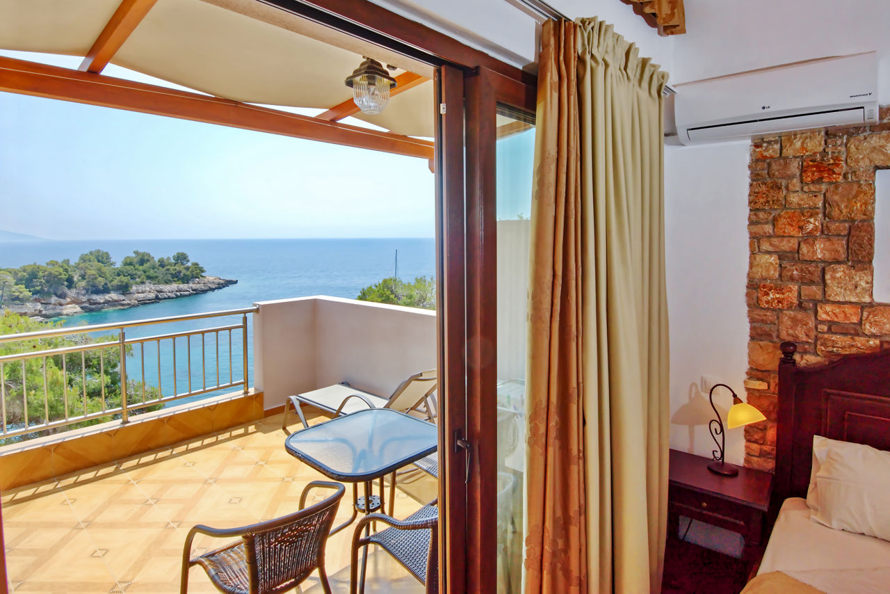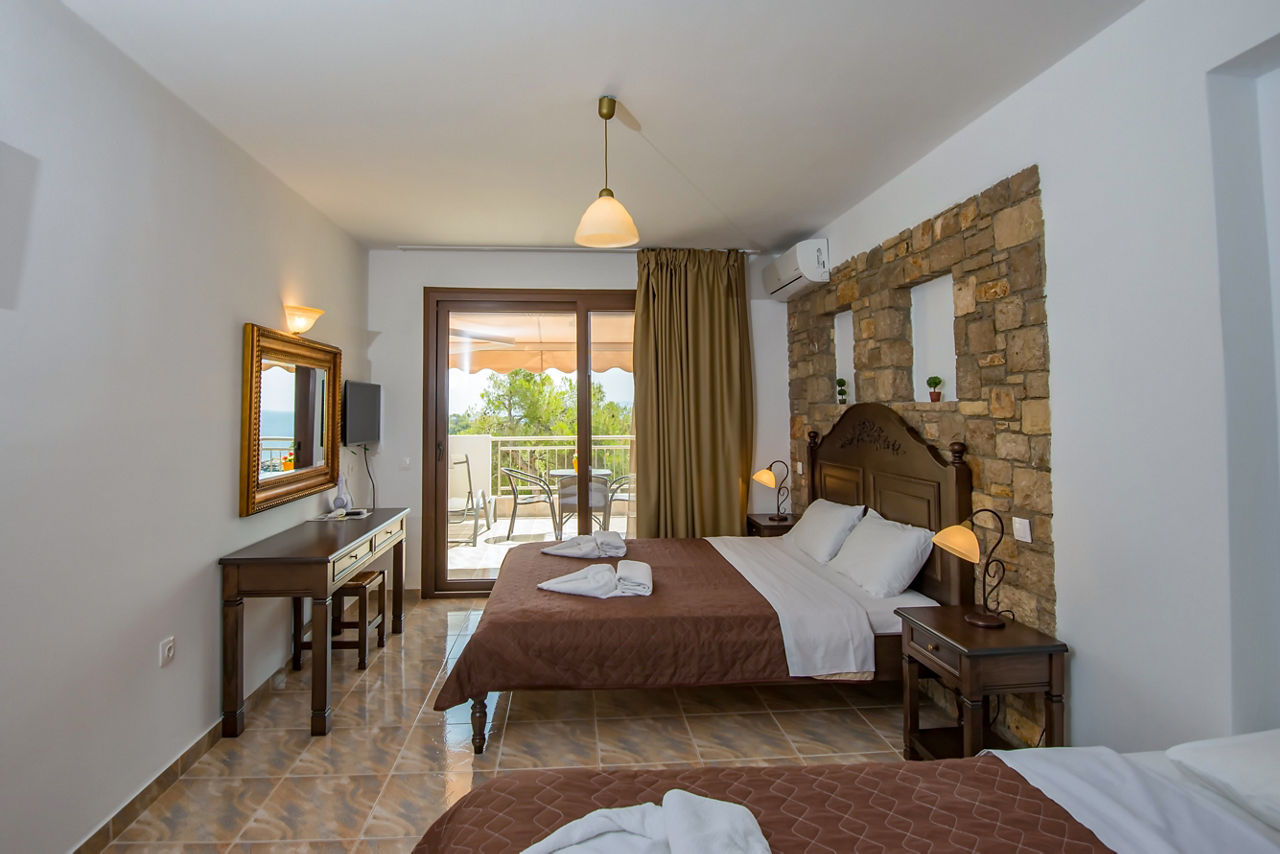 The Marilena Apartments offer a slice of traditional Greek life and the chance to get away from it all, with spacious accommodation, a peaceful setting, and stunning views. Perfectly positioned above the Rousoum Gialos beach, where the pebble shore and bright turquoise waters are backed by a café and taverna, this is an ideal spot to unwind. Patitiri resort centre, with its cluster of tavernas, bars and bakeries surrounding the port is a short walk away, perfect for laid-back evenings.