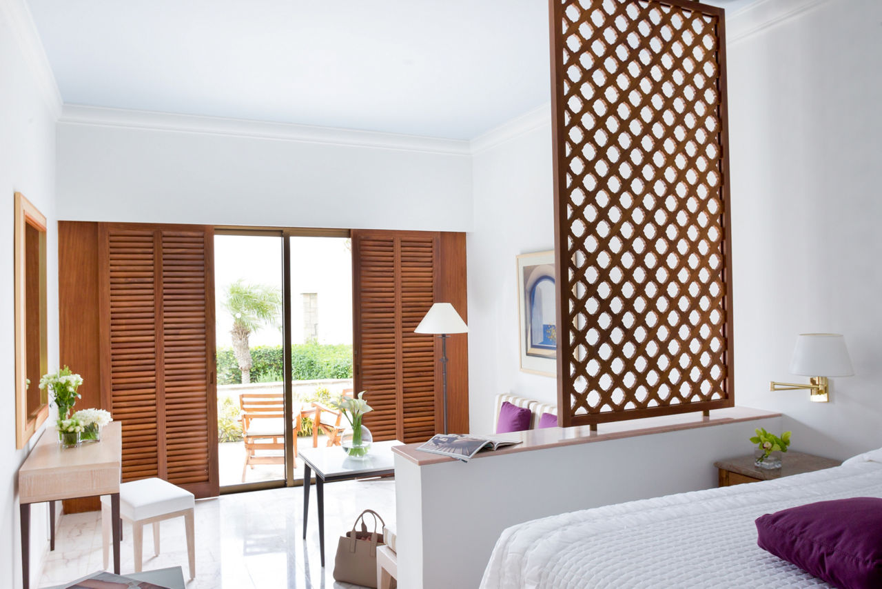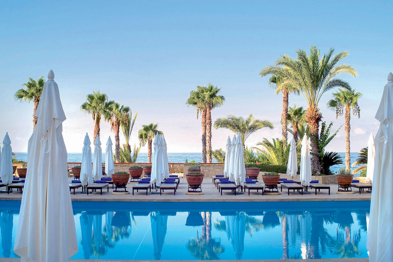 Set up base at Annabelle, surrounded by six acres of leafy green gardens and a string of secret pathways perfect for sunset strolls. Experience exceptional service and a timeless elegance, from the swim-up bar to the Amorosa restaurant. Annabelle is the perfect choice for golfers, with 4 of Cyprus' beautiful golf courses all within a 30-minute drive of the property, including the PGA accredited Aphrodite Hills Golf Course. Fancy savouring French flavours over a candlelit dinner? Or maybe sipping a refreshing cocktail with sweeping ocean views from the rooftop Ouranos? Afterwards, retreat to your comfy quarters to reflect. Long, lazy days were meant to be spent on the loungers by the palm-lined pool. Its excellent central location in Kato Paphos means guests of Annabelle can be as active or relaxed as they wish.