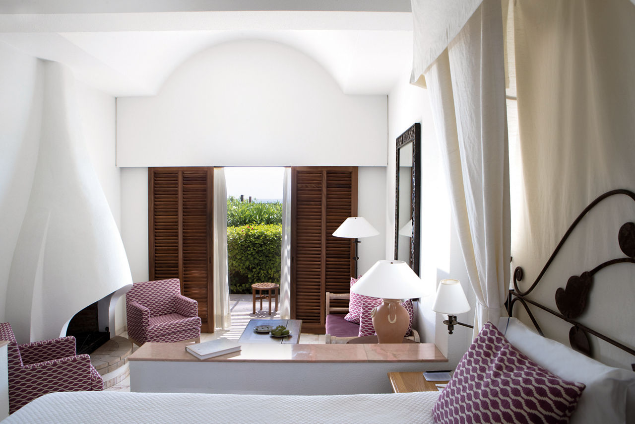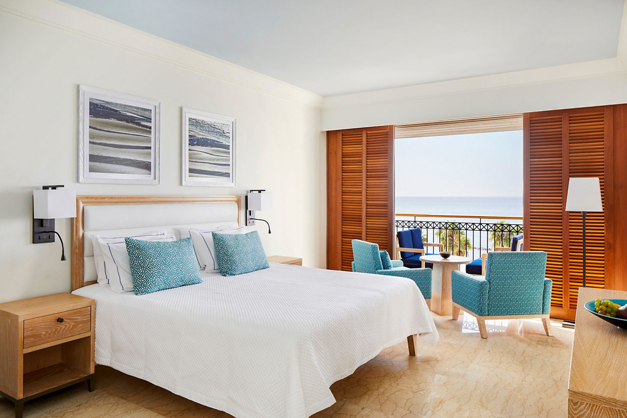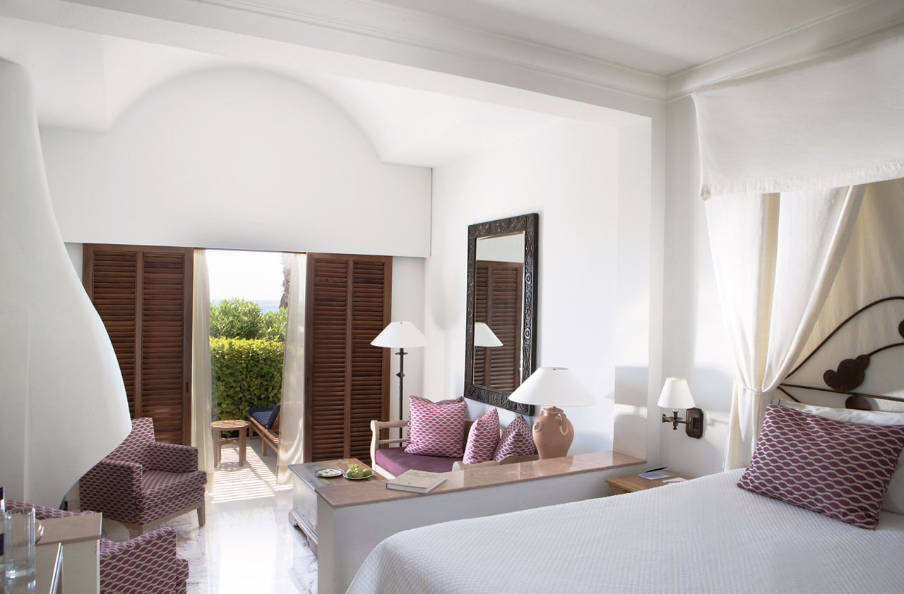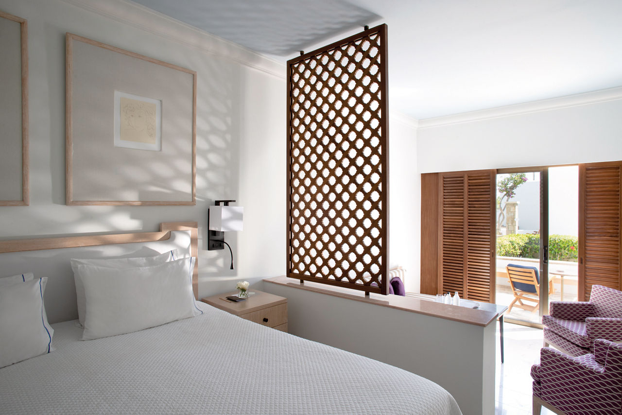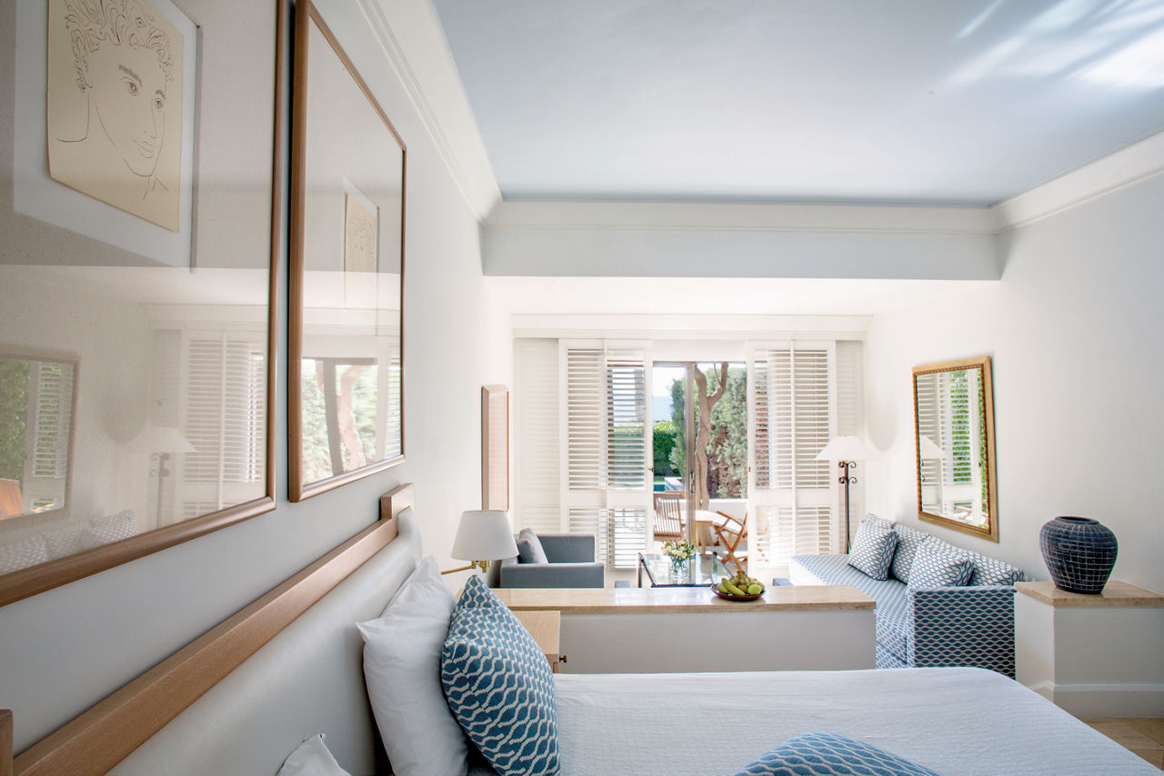Standard rooms sleep 2 adults and have bathroom containing a bath, air conditioning (Apr-Oct) hairdryer, bathrobe and slippers, flat screen television and balcony. Standard rooms with Sea View, Terrace rooms with Garden View or Sea View, Deluxe rooms with Sea View all sleeping up to 3 adults, Garden Studio suite, Garden Studio suite with Whirlpool sleeping 2 adults, Studio Suite with Private Plunge Pool sleeping up to 3 adults, Deluxe Two Bedroom suite sleeping up to 6 adults, Family rooms and Family studios sleeping 2 adults and 2 children, Sole Use rooms and Single Parent rooms are also available.