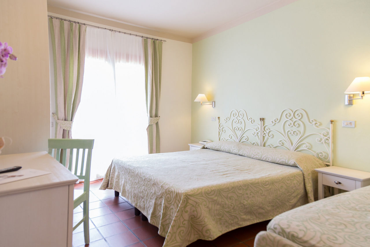 Standard Double rooms sleep 2 adults and have bathroom containing a shower, air conditioning, hairdryer, flat screen television and balcony or terrace. Quadruple rooms sleeping up to 4 adults are also available.