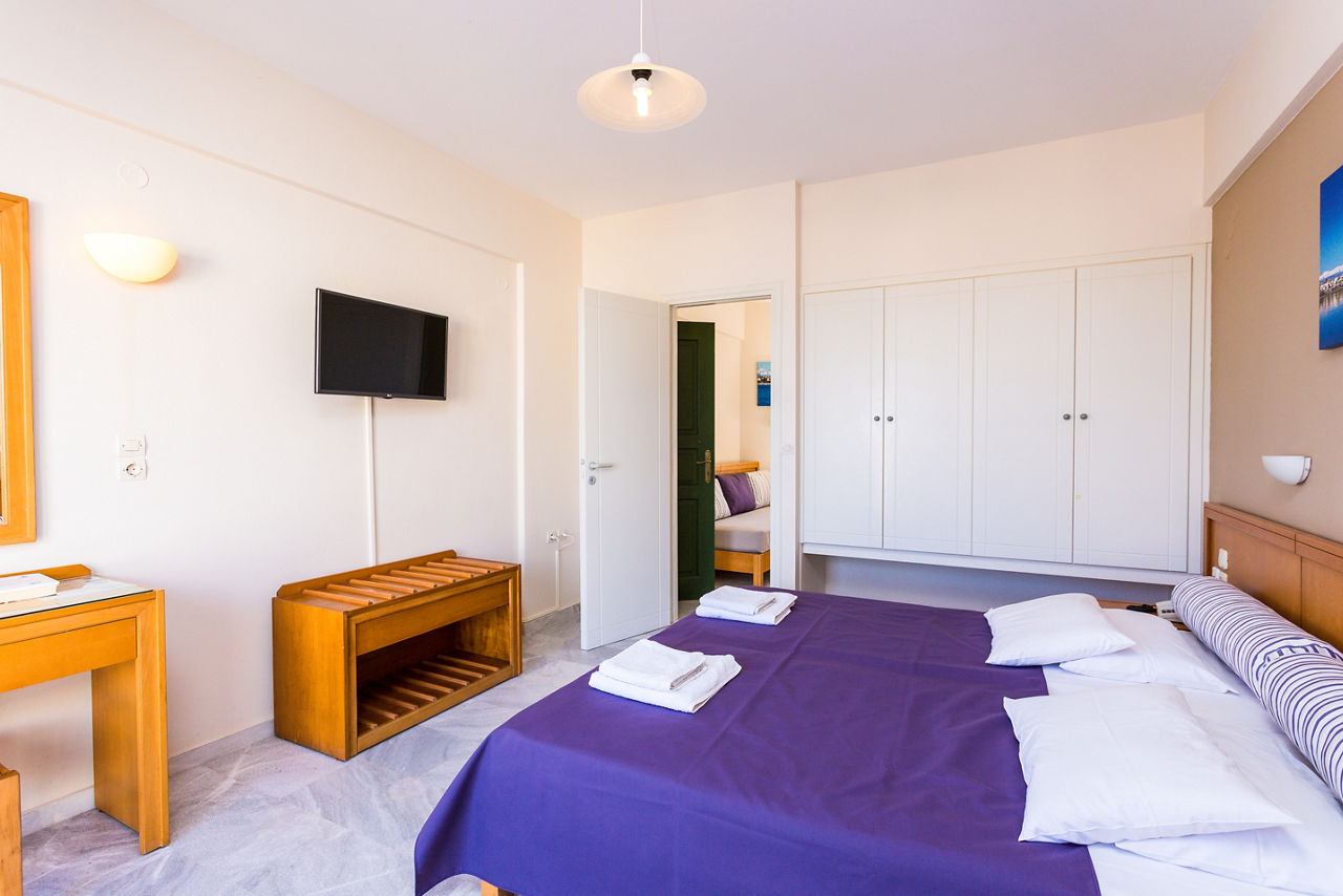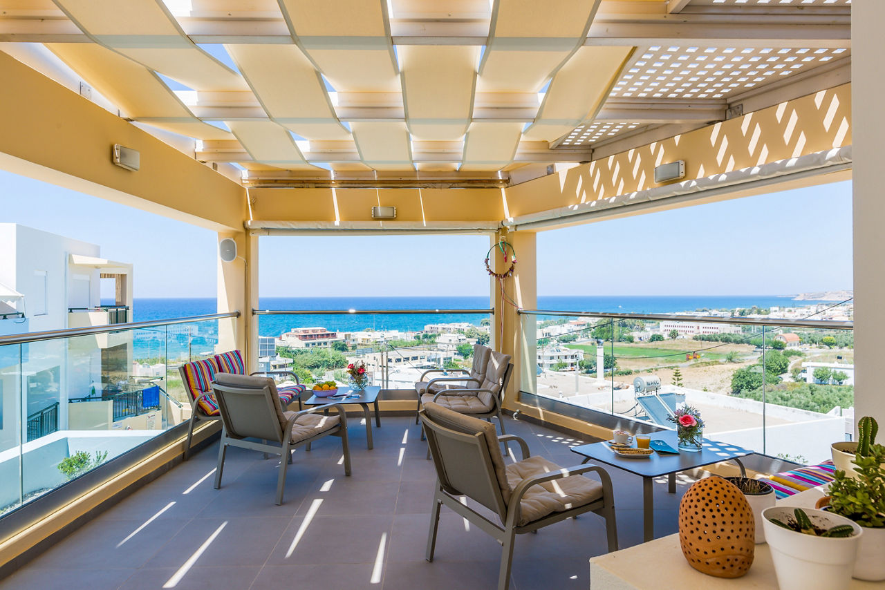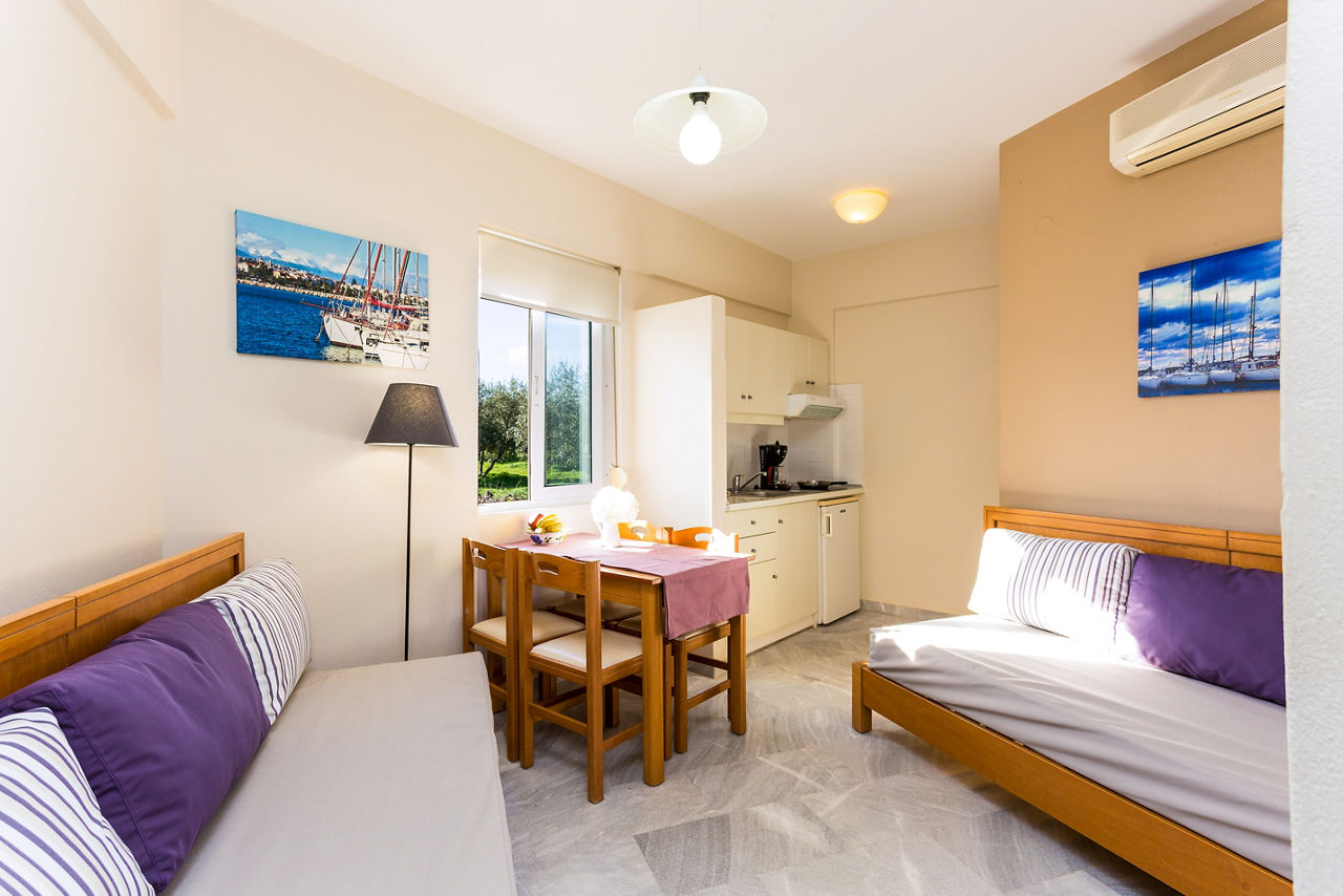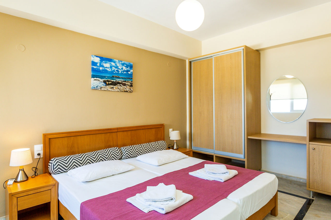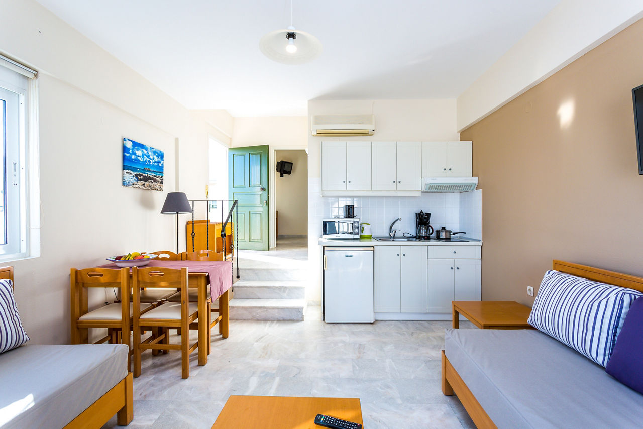 In an elevated position in the quaint village of Sfakaki, Radamanthy?s Apartments offers a warm welcome with stunning views of the coastline. With a rooftop sun terrace, pool and pretty gardens there?s plenty of space to rest and recharge while soaking up the rays. Have a snack at the pool bar, cook something up in your room, or visit one of the local restaurants found nearby ? here you?ve got the choice.