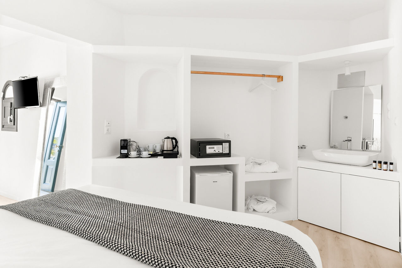Carved into the rock of the Caldera landscape, the powder white Mill Houses Elegant Suite?s provide unobstructed views of the volcanic scenery. Feel at one with architect whilst indulging in modern comforts and contemporary décor. Why not spend the day unwinding on the sun terrace and having refreshing dips in the outdoor pool, then as the night draws in enjoy a gastronomic experience at one of the coastline restaurants which are only a short walk away.