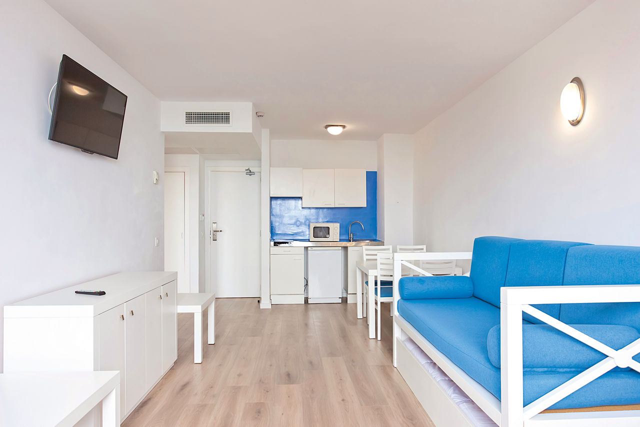 Studios sleep up to 2 adults and 1 child and have bathroom with shower, hairdryer, flat screen television, fridge and balcony. Room upgrade options are also available.