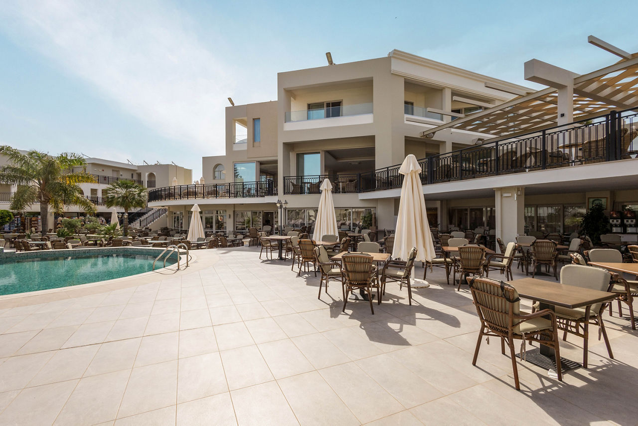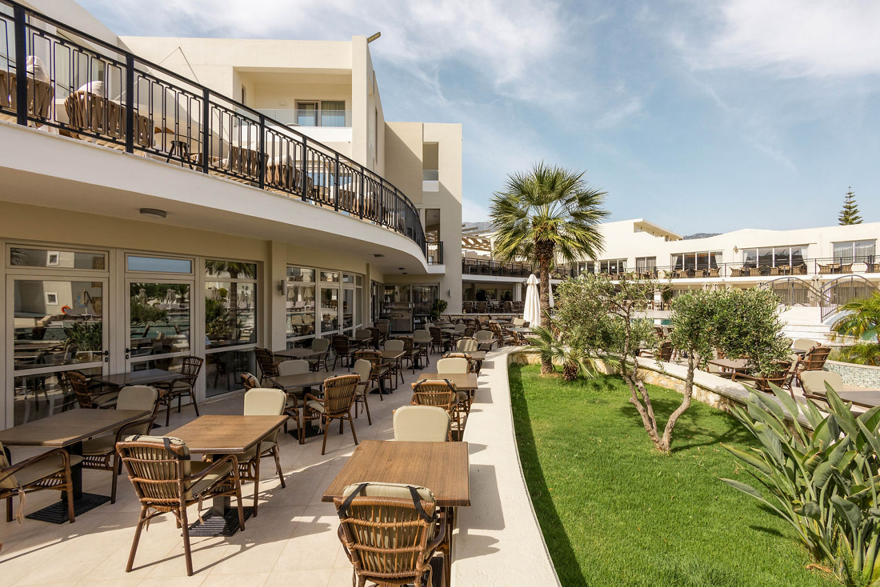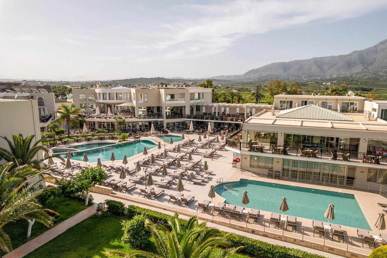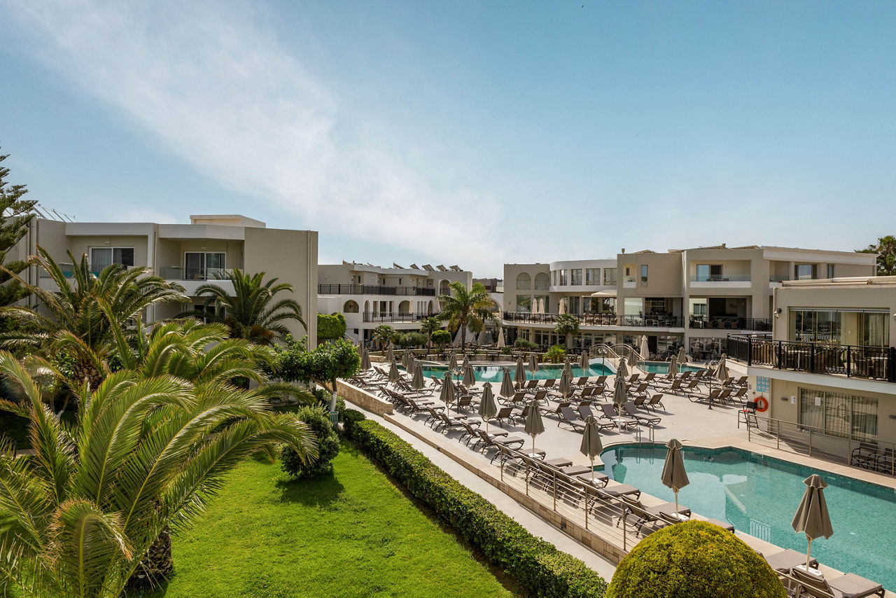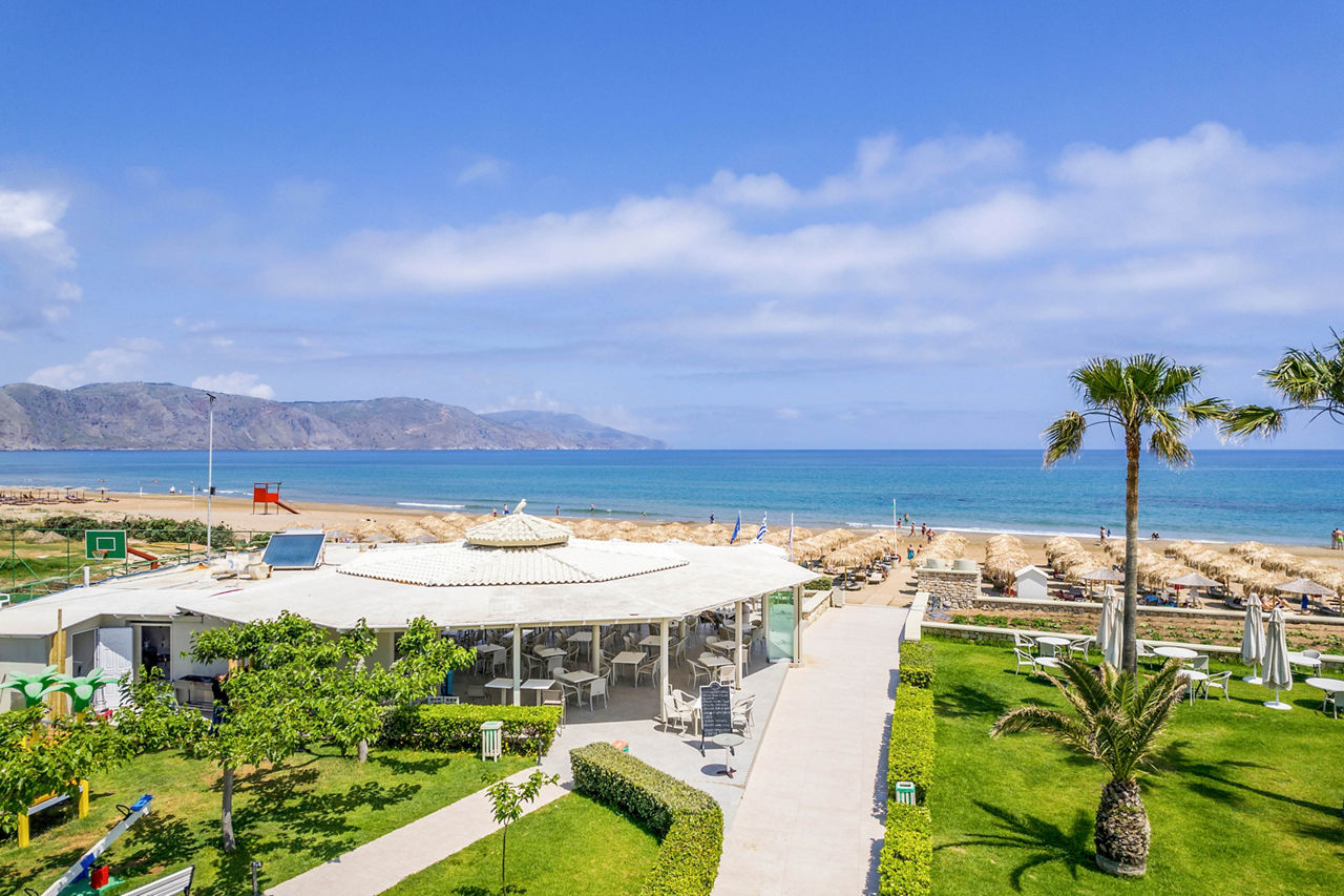 Steps from the beach and surrounded by views of the stunning coastline and gardens, Vantaris Palace has something for all ages. Relax at the pool, take a short drive to the resort centre and visit the sights of Georgioupolis, or visit the nearby Kournas Lake. Opt for a workout in the gym, before enjoying dinner at the restaurant onsite, and relax whilst watching the sun setting overhead.