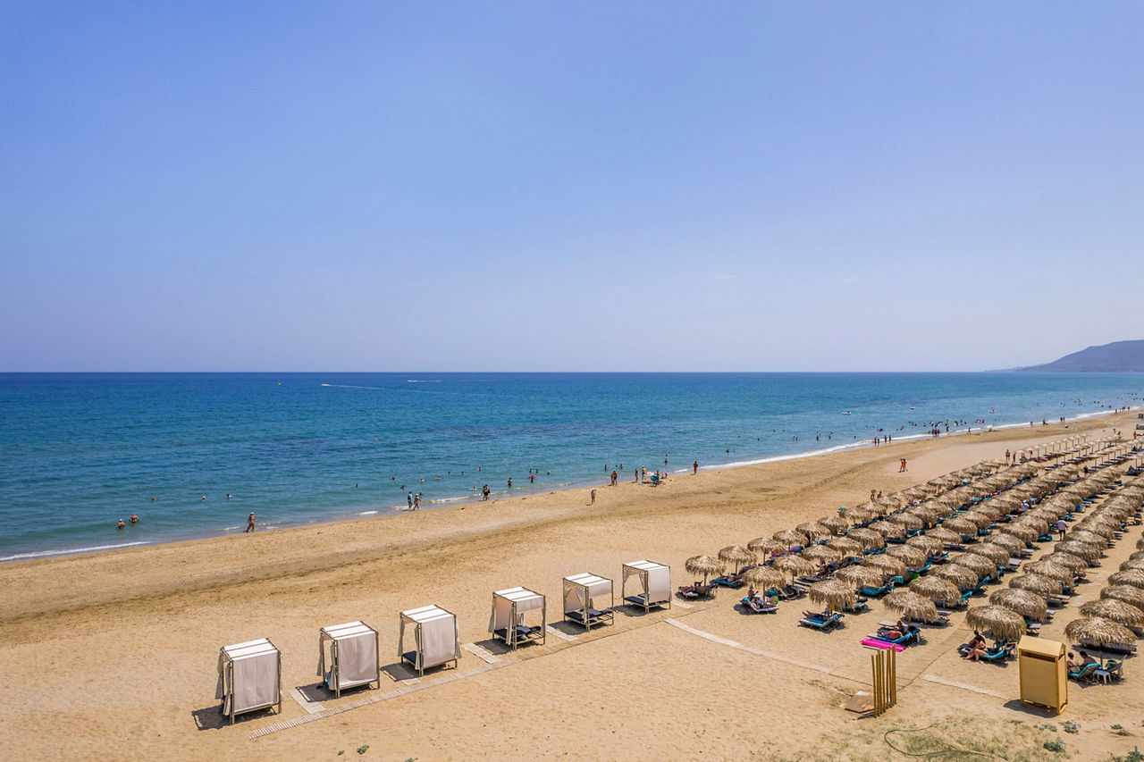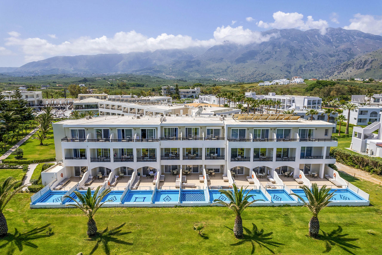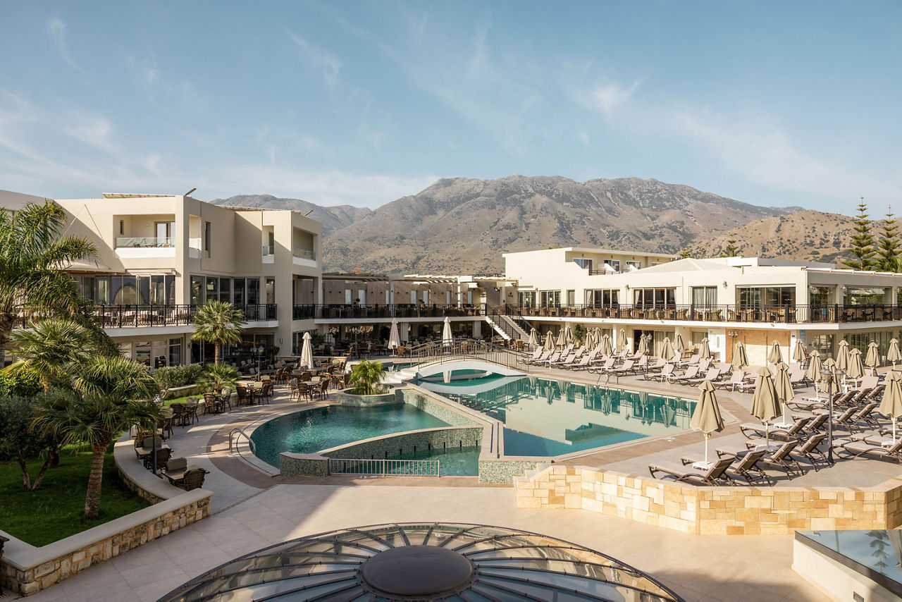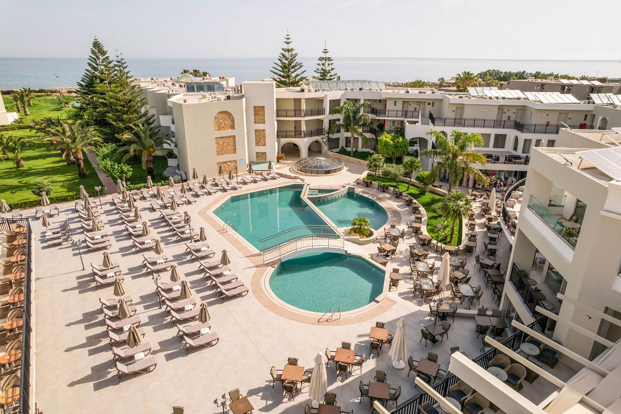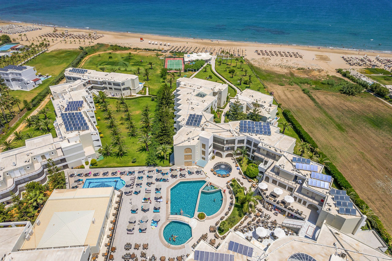Steps from the beach and surrounded by views of the stunning coastline and gardens, Vantaris Palace has something for all ages. Relax at the pool, take a short drive to the resort centre and visit the sights of Georgioupolis, or visit the nearby Kournas Lake. Opt for a workout in the gym, before enjoying dinner at the restaurant onsite, and relax whilst watching the sun setting overhead.