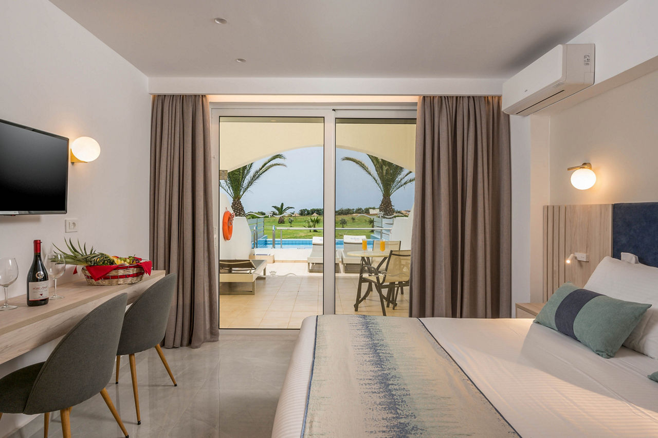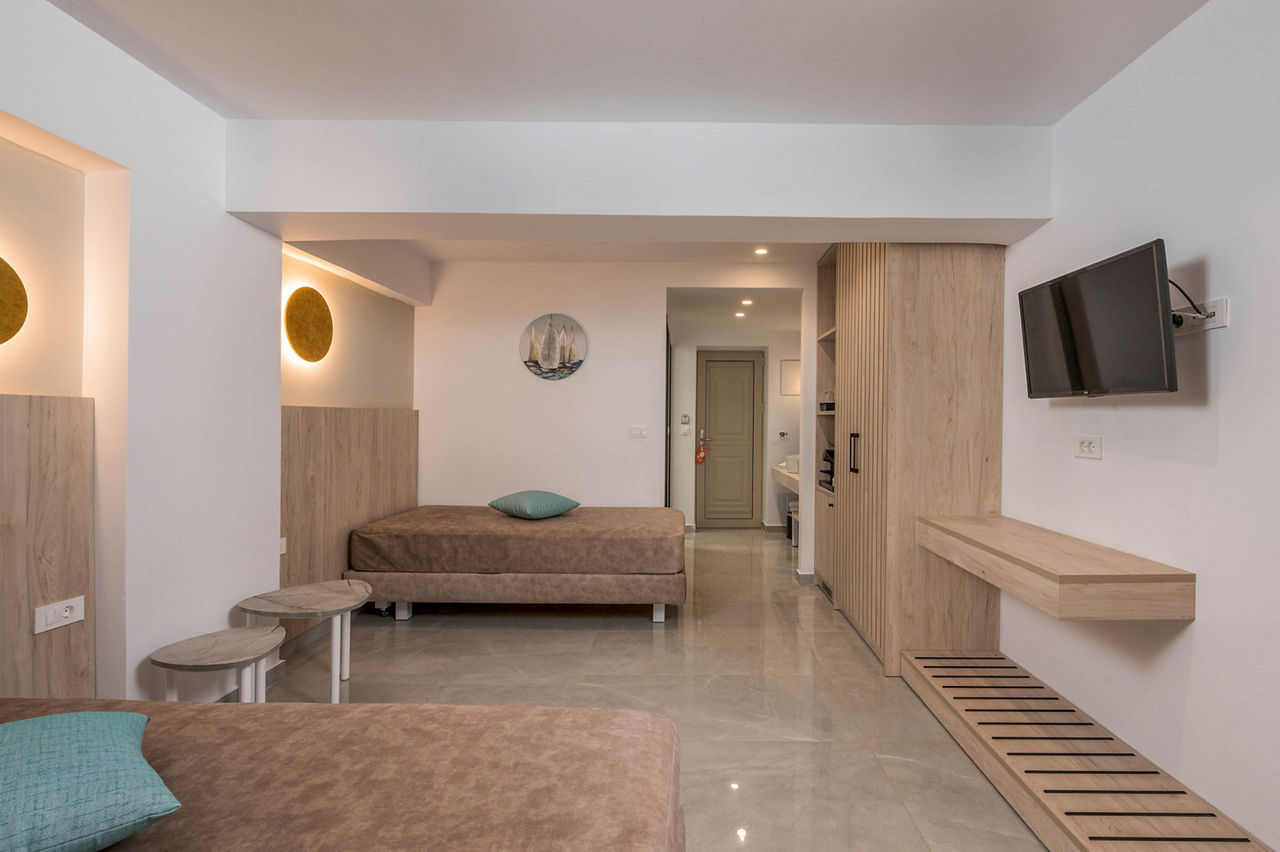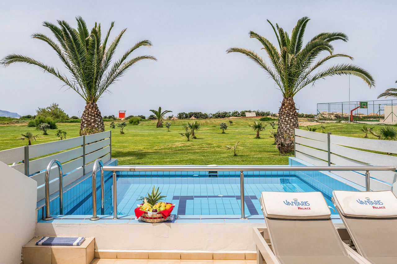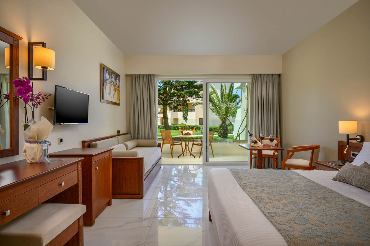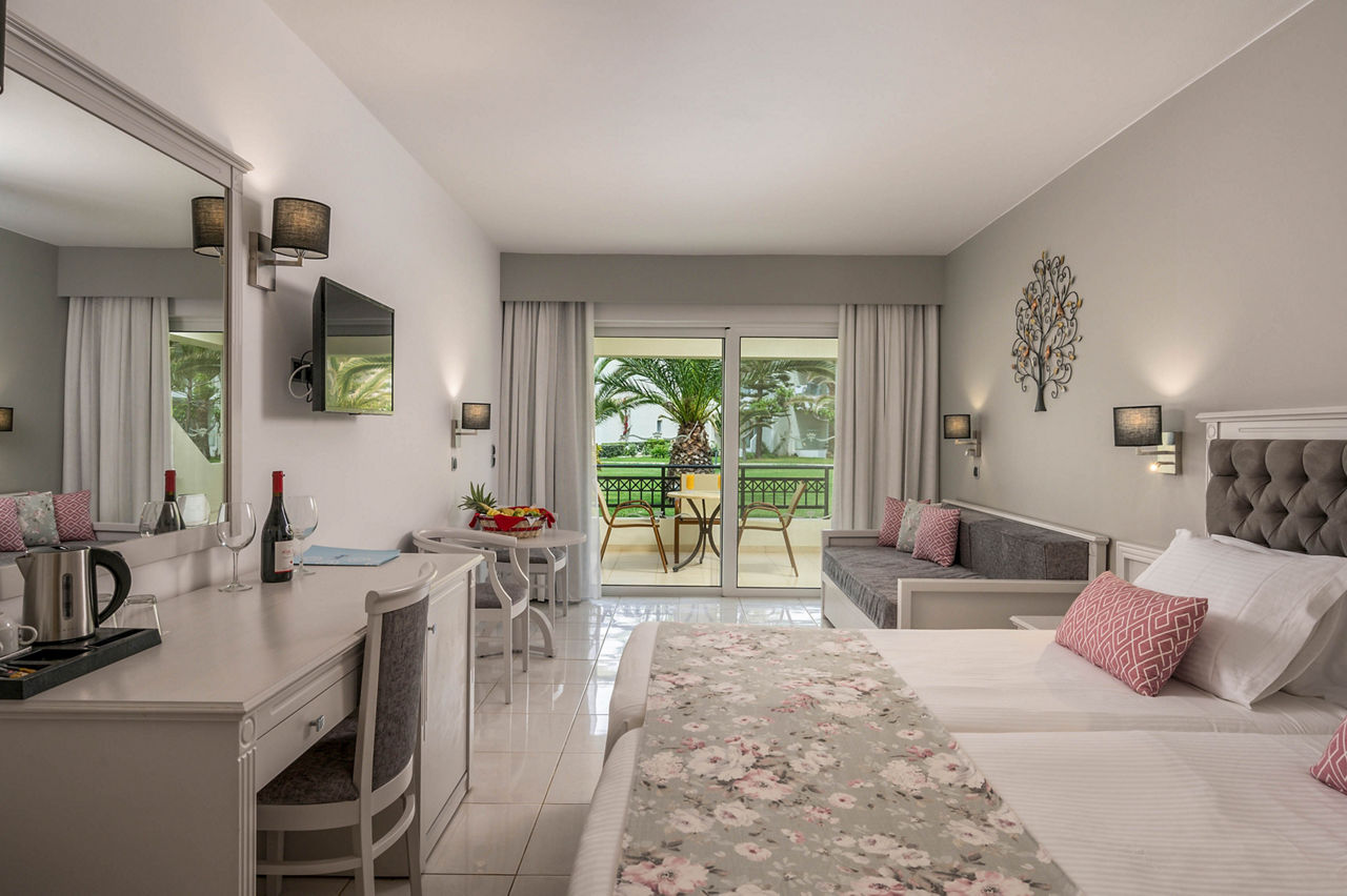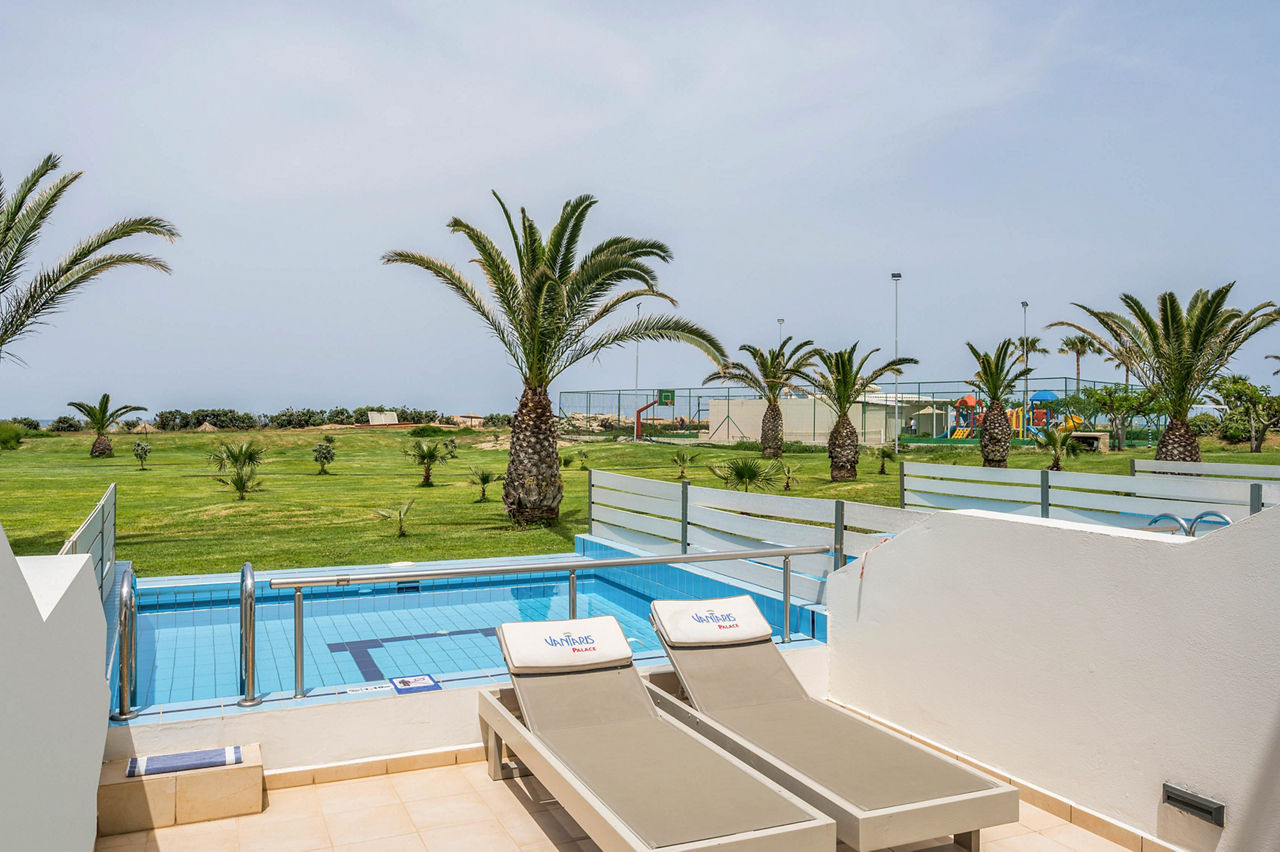 Steps from the beach and surrounded by views of the stunning coastline and gardens, Vantaris Palace has something for all ages. Relax at the pool, take a short drive to the resort centre and visit the sights of Georgioupolis, or visit the nearby Kournas Lake. Opt for a workout in the gym, before enjoying dinner at the restaurant onsite, and relax whilst watching the sun setting overhead.