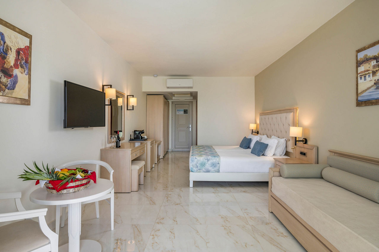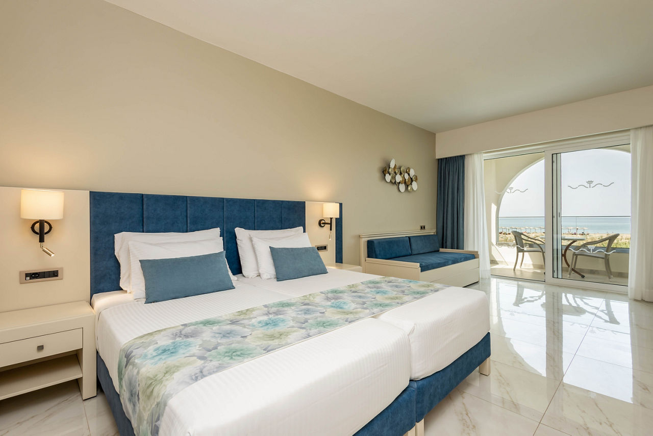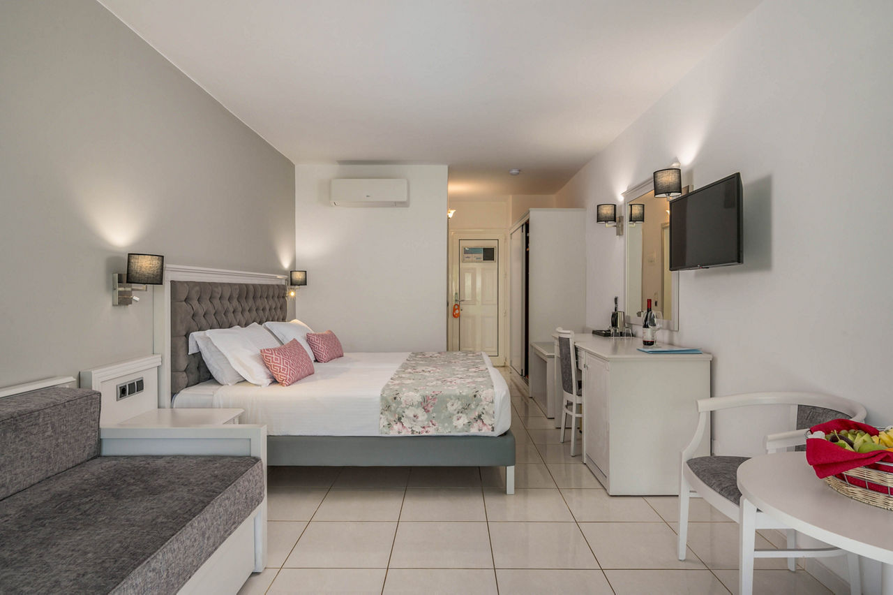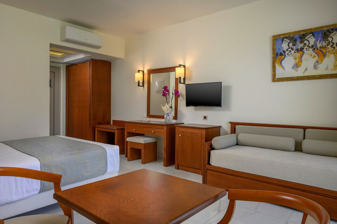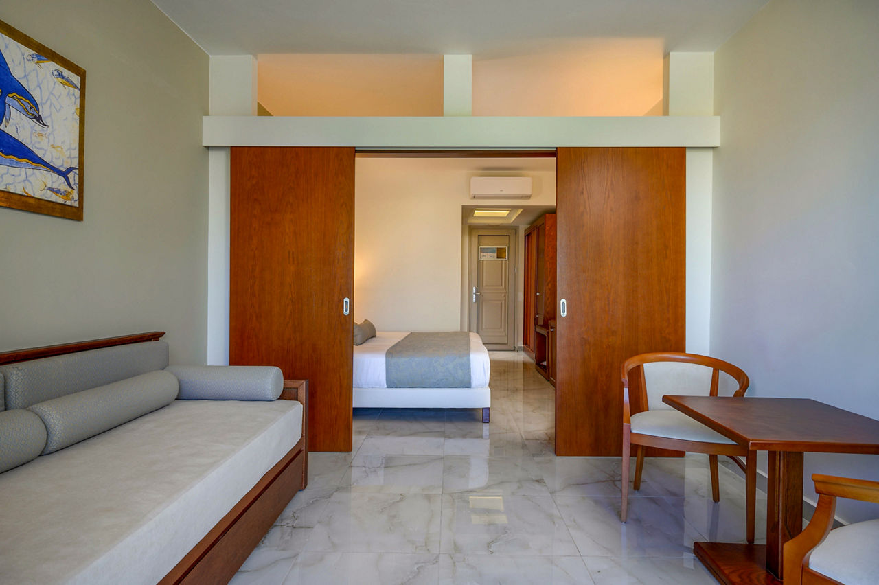 Steps from the beach and surrounded by views of the stunning coastline and gardens, Vantaris Palace has something for all ages. Relax at the pool, take a short drive to the resort centre and visit the sights of Georgioupolis, or visit the nearby Kournas Lake. Opt for a workout in the gym, before enjoying dinner at the restaurant onsite, and relax whilst watching the sun setting overhead.