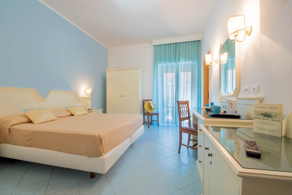Twin rooms sleep up to 3 adults and have bathroom containing a shower, air conditioning (15 May-15 Oct), hairdryer, flat screen television, fridge, kettle and balcony. Single rooms are also available.