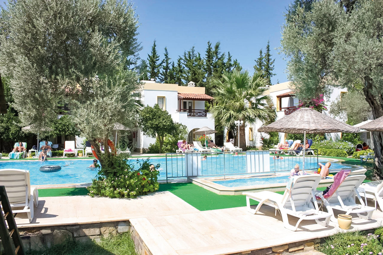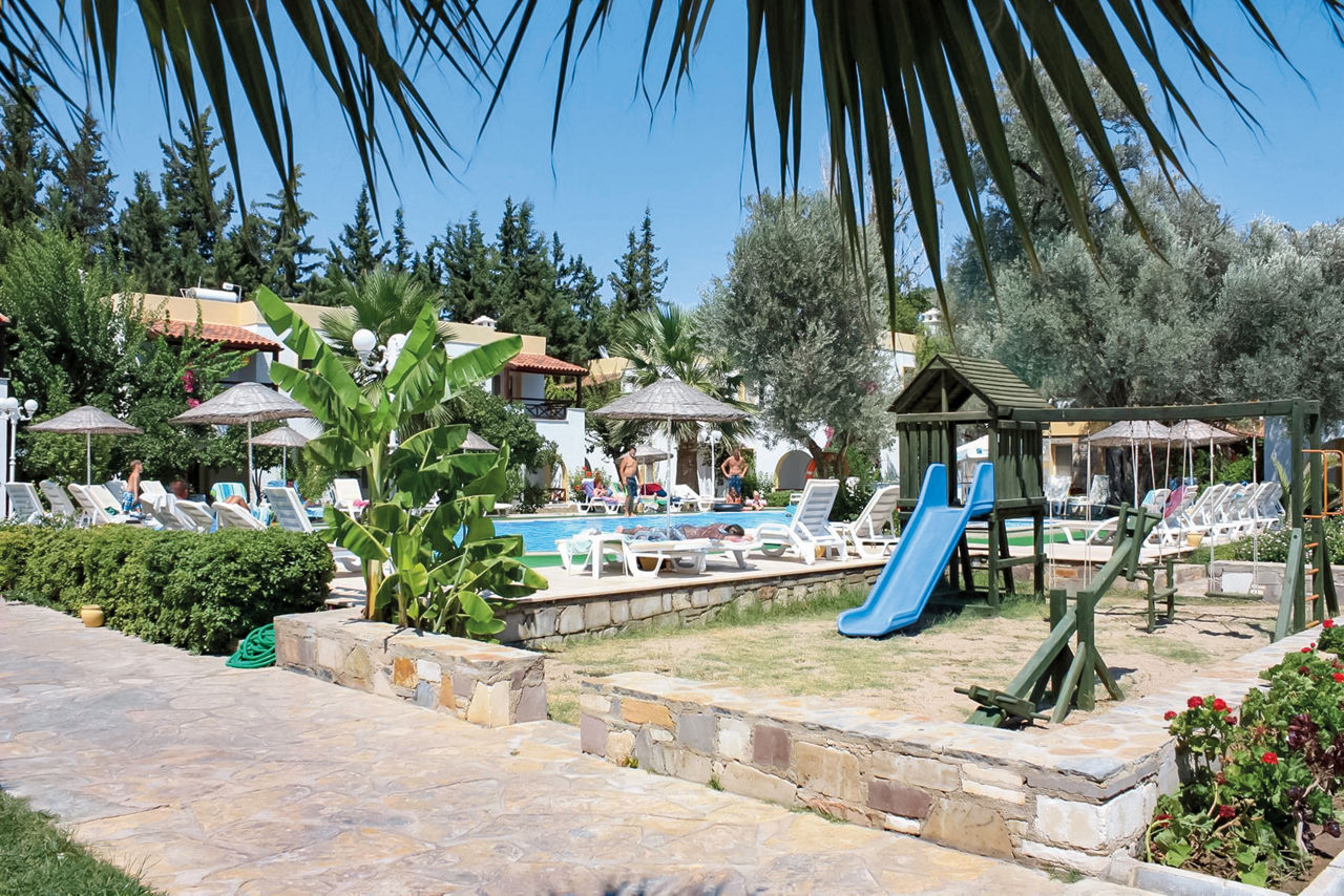 The Toloman Bitez Park Apartments are a great choice for all the family. There's a large pool and the brilliant beach isn?t far either! Plus, with Bitez nearby, you're free to sample all of the restaurants in the resort. Staying put? Kick back on a sunlounger or take the kids to the swings at the playground.