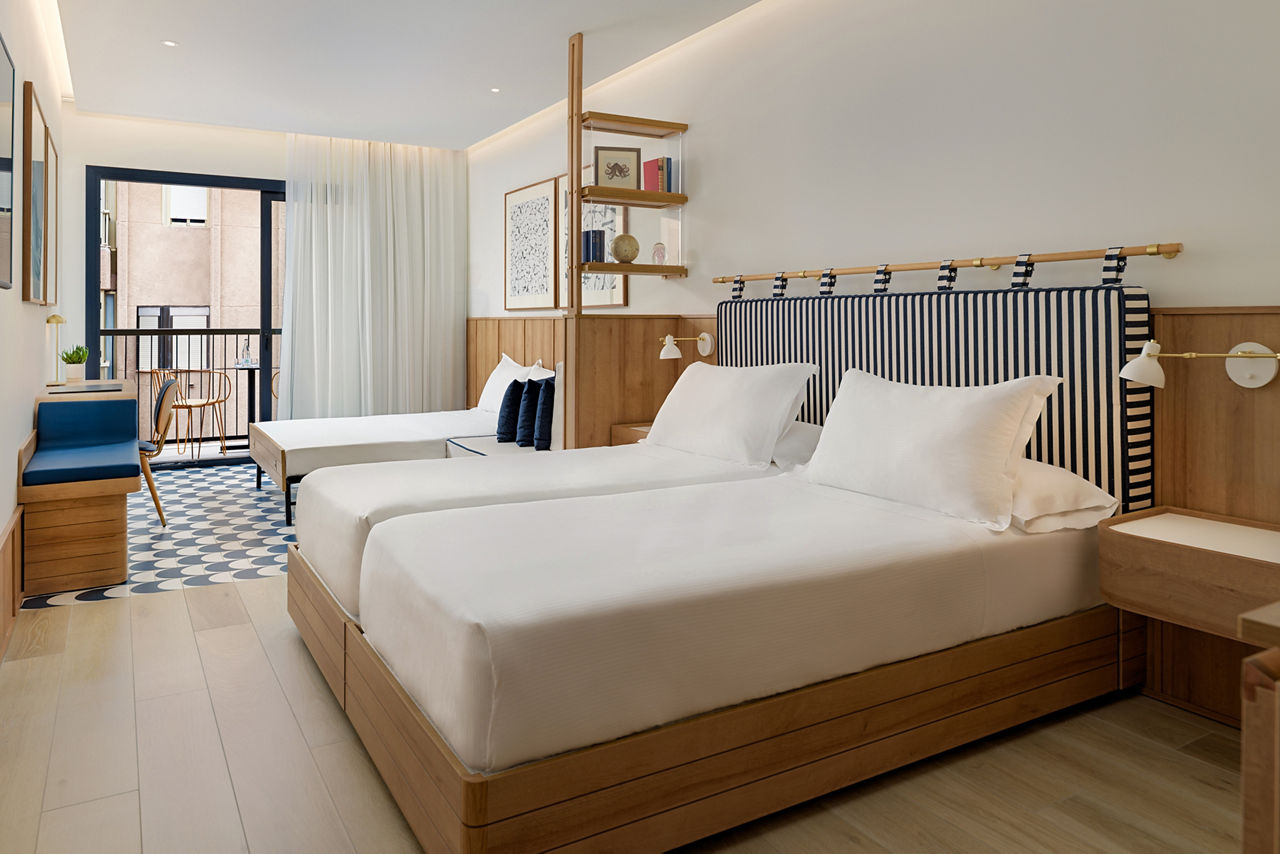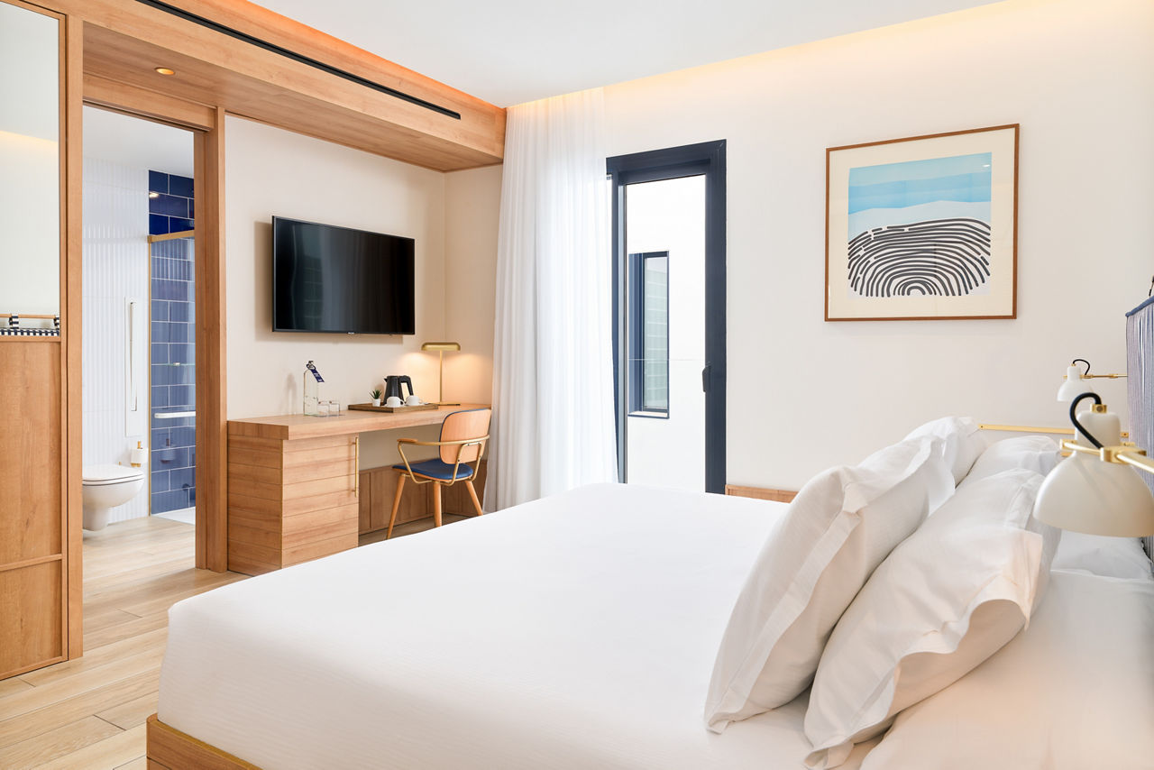 Double rooms with balcony sleep 2 adults and have bathroom containing shower only, air conditioning (15 Jun-15 Sep), hairdryer, flat screen television and balcony.