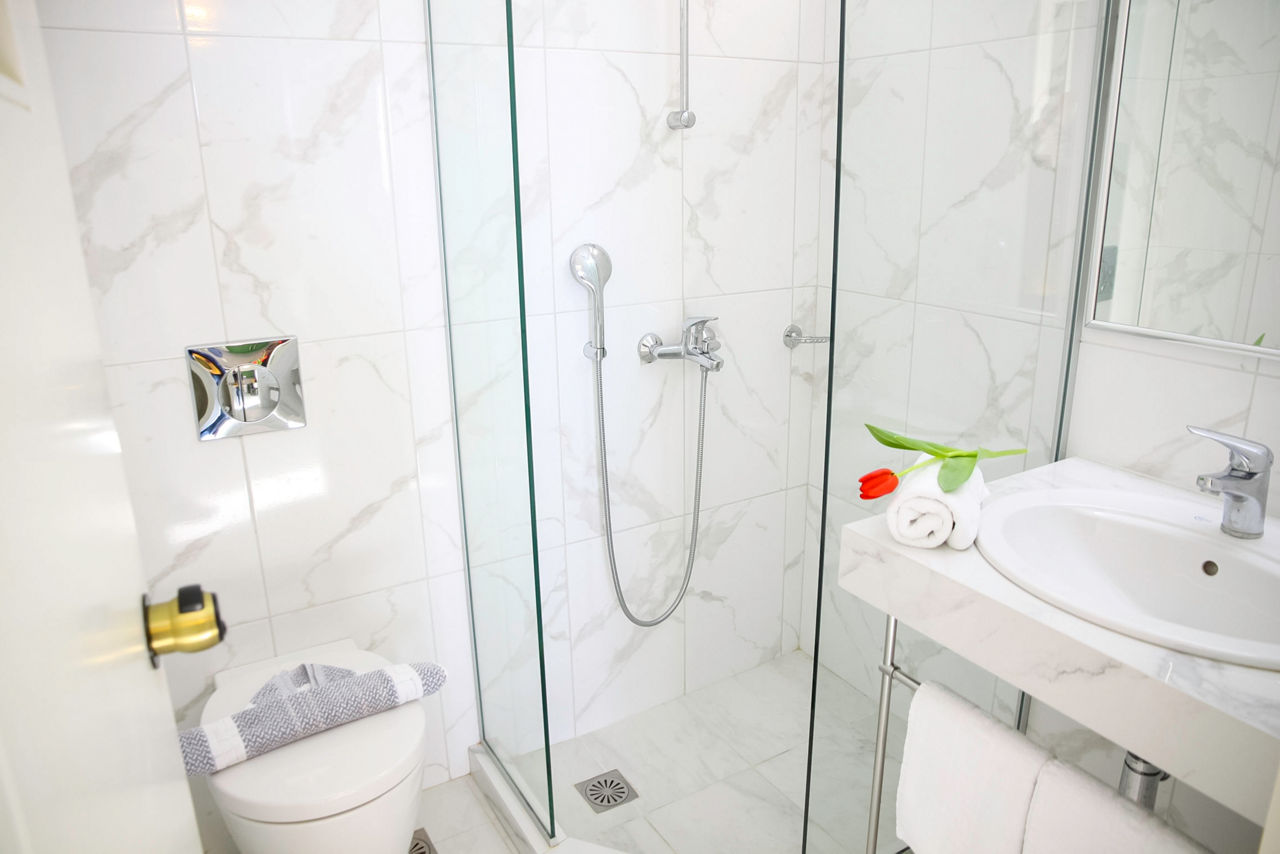 Studios sleep up to 3 adults and have bathroom containing a shower, air conditioning*, hairdryer, television, safety deposit box*, kitchenette with double cooking rings, fridge, kettle and balcony or terrace. One Bedroom apartments are also available.