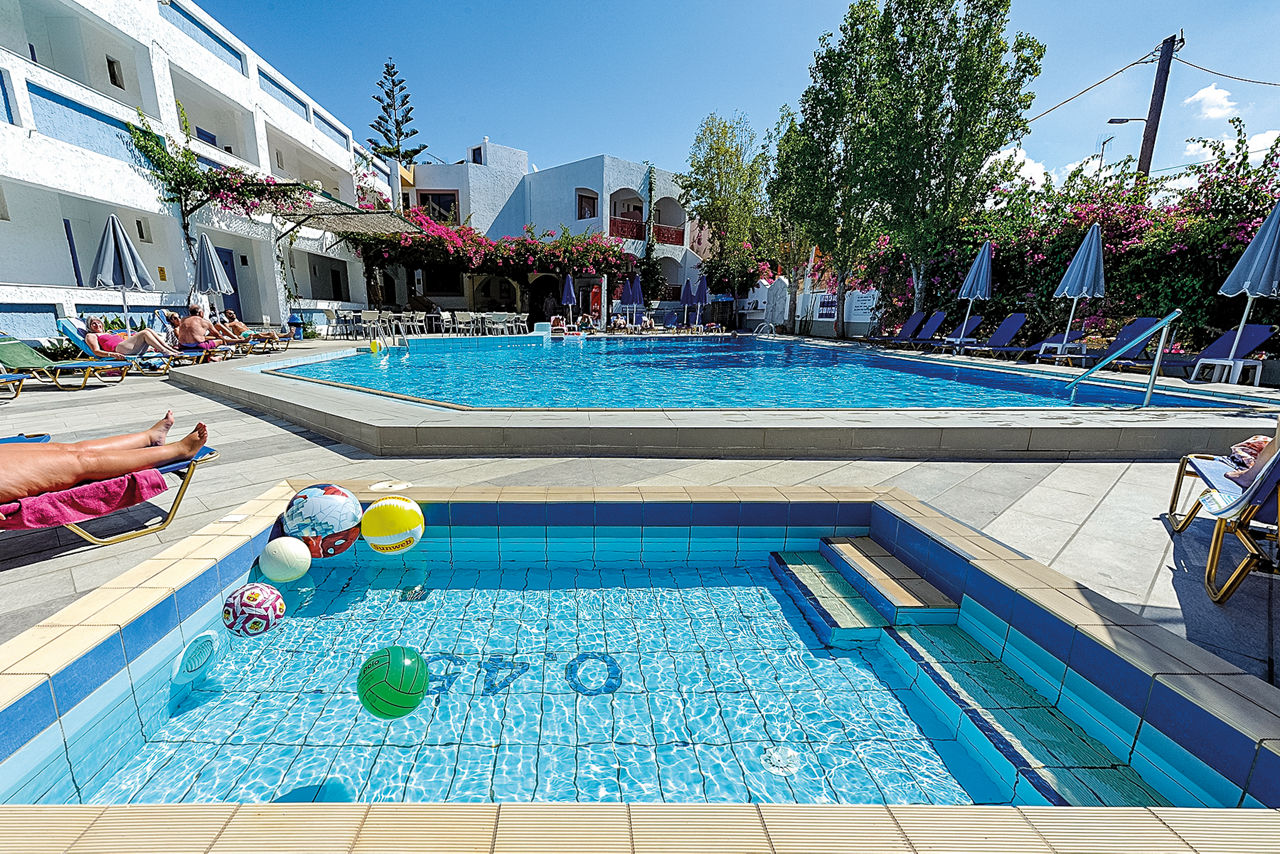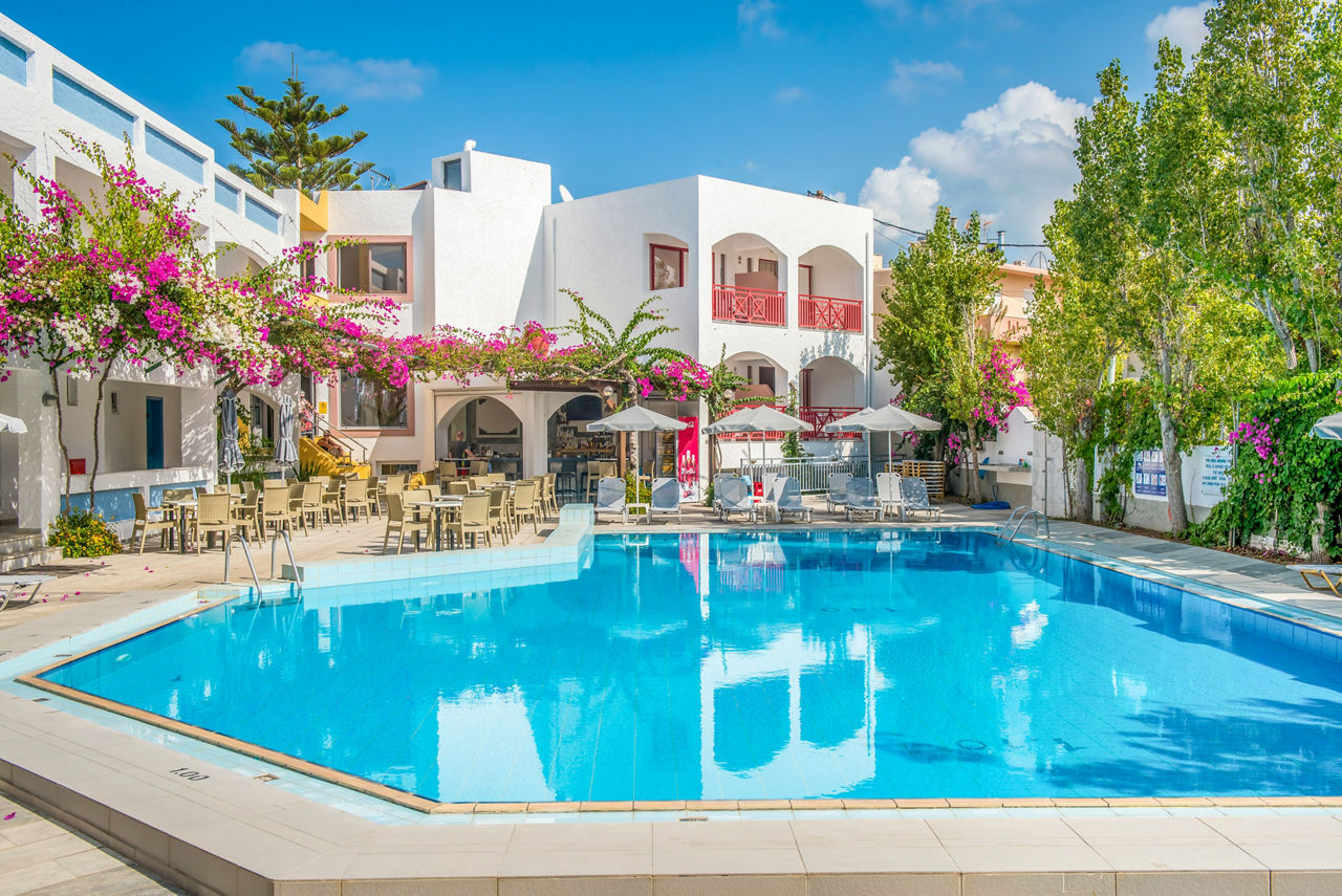 Offering a warm and friendly atmosphere combines with views of pretty flower gardens and mountains make the Apollon Apartments a great choice for a stress-free holiday. Studios and apartments are well-maintained and are complemented by a large outdoor pool and a great poolside snack bar. These apartments also benefit from a fantastic location; they?re close to the beach as well as a strip lined with shops, bars and tavernas and there?s a local bus stop nearby providing services to Rethymnon too.