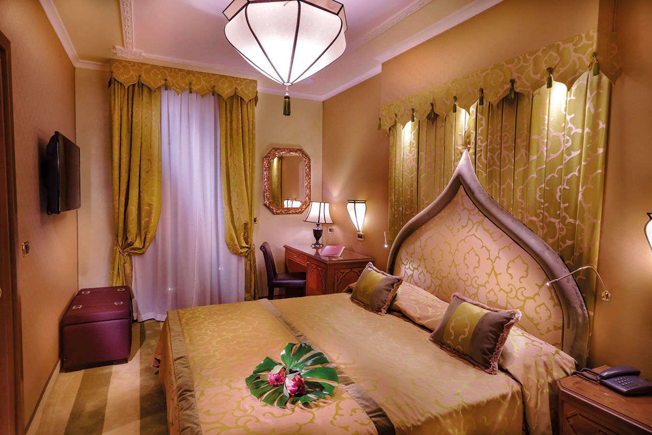 The charming hotel Ai Mori d'Oriente is located in the picturesque Cannareggio quarter of Venice, with its cobbled streets and hidden courtyards, yet still within easy reach of the famous sights. Situated in a 15th century palace with a Moorish-inspired interior, this is an ideal place to discover the romantic charm of this enchanting city.